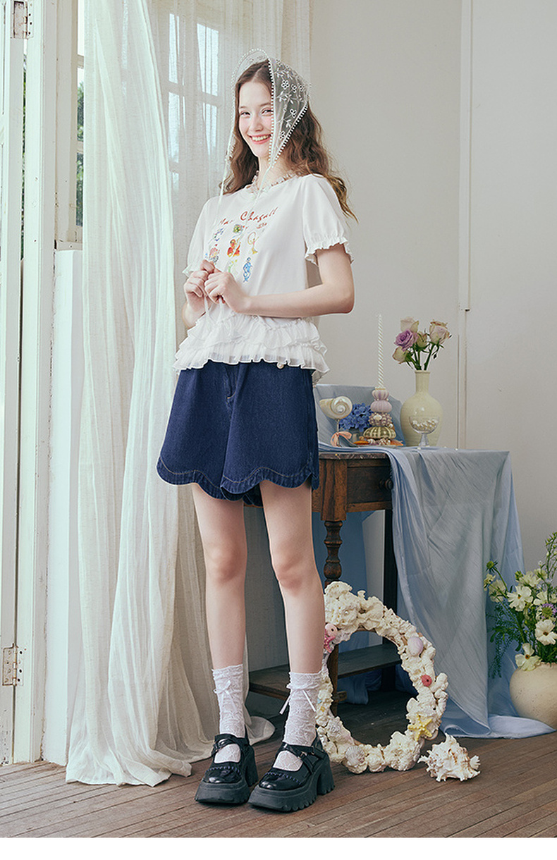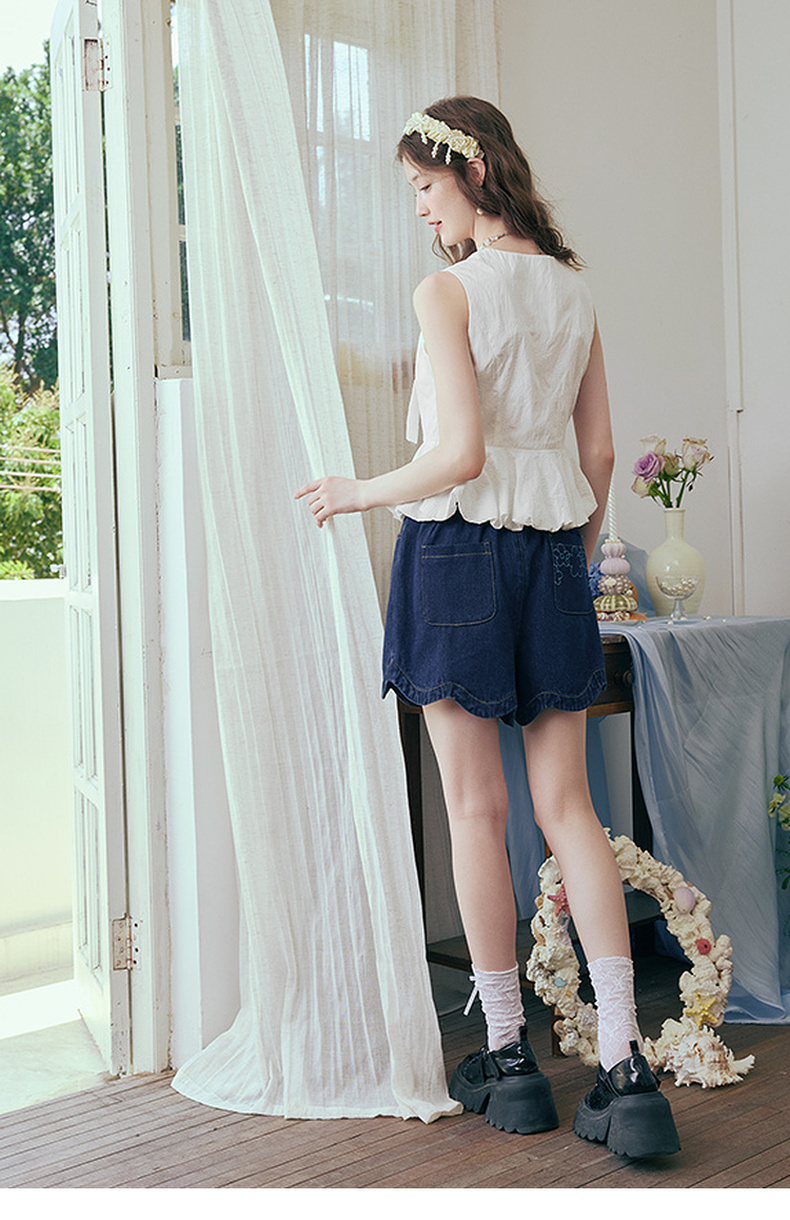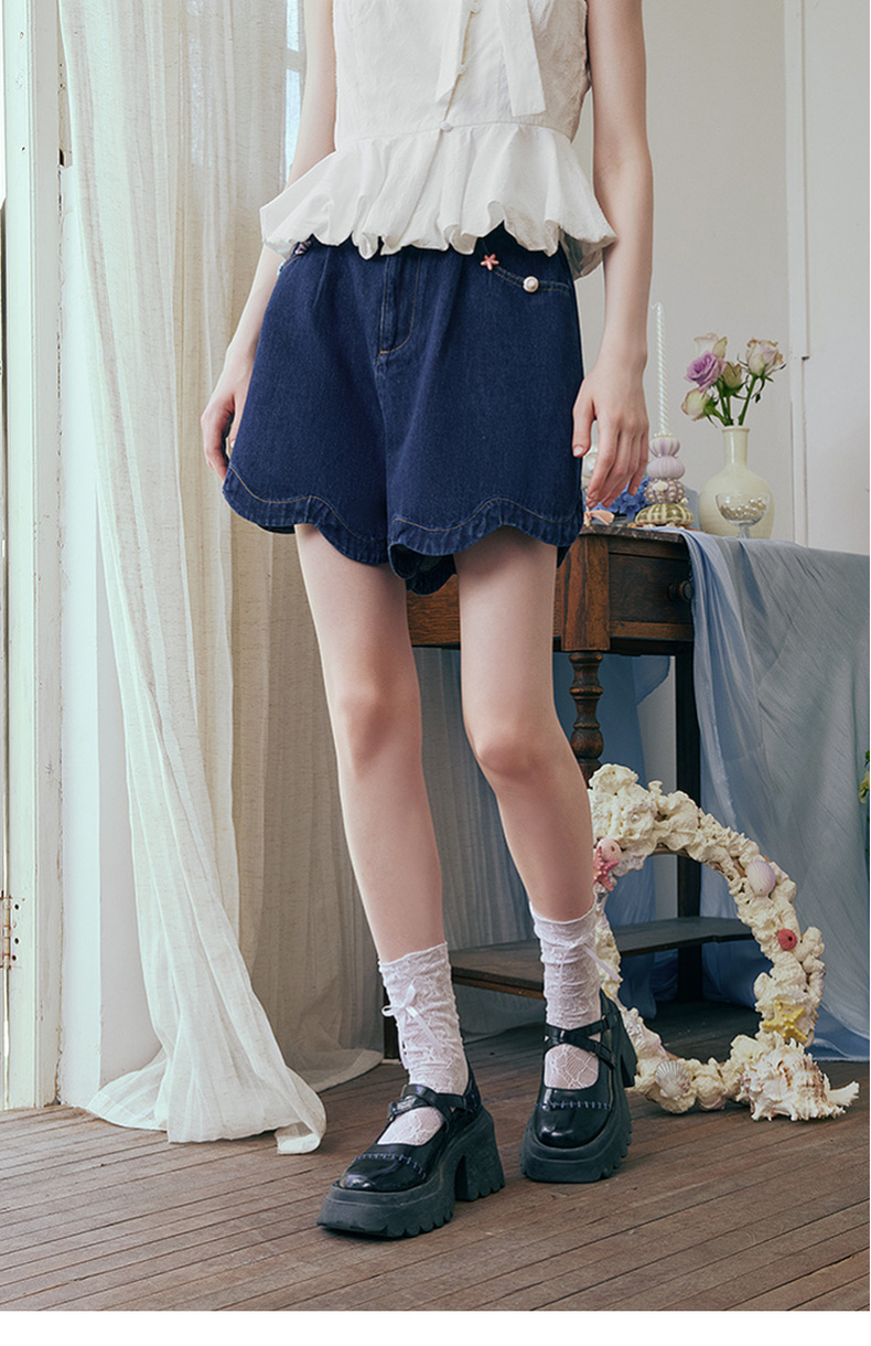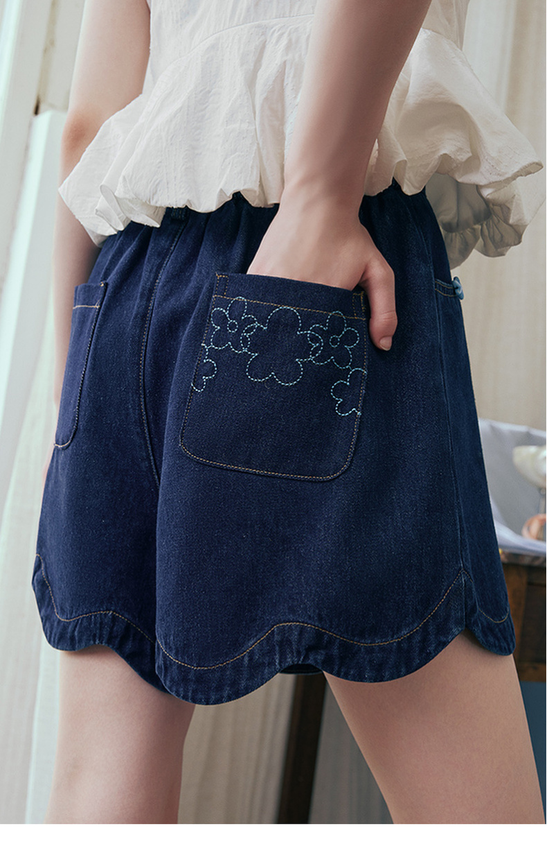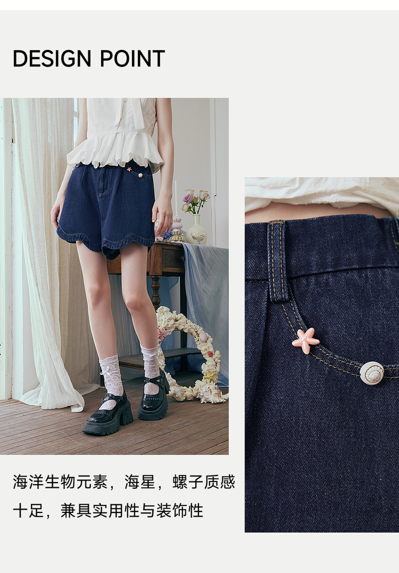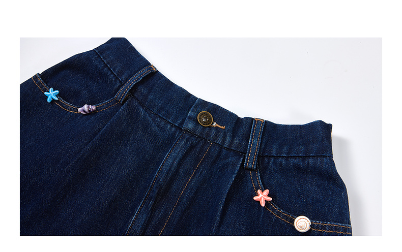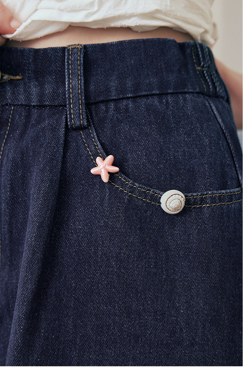 两三事星海拾贝2025夏新款休闲平纹螺装饰绣花口袋直筒牛仔裤女