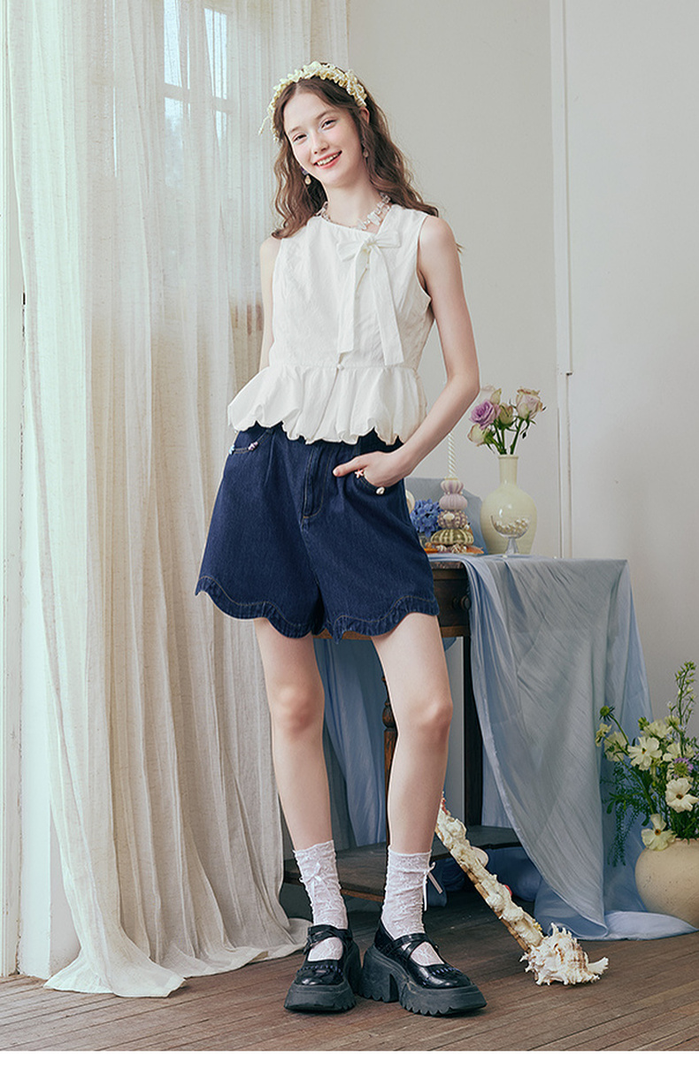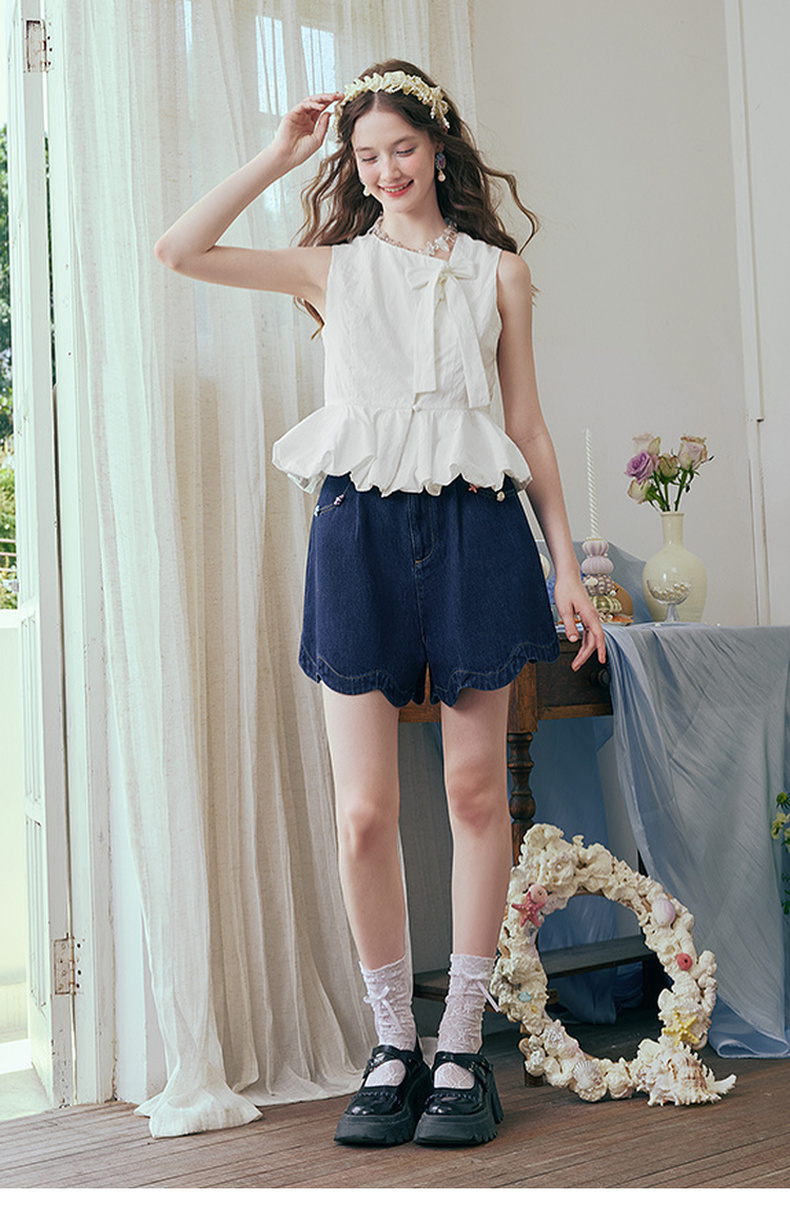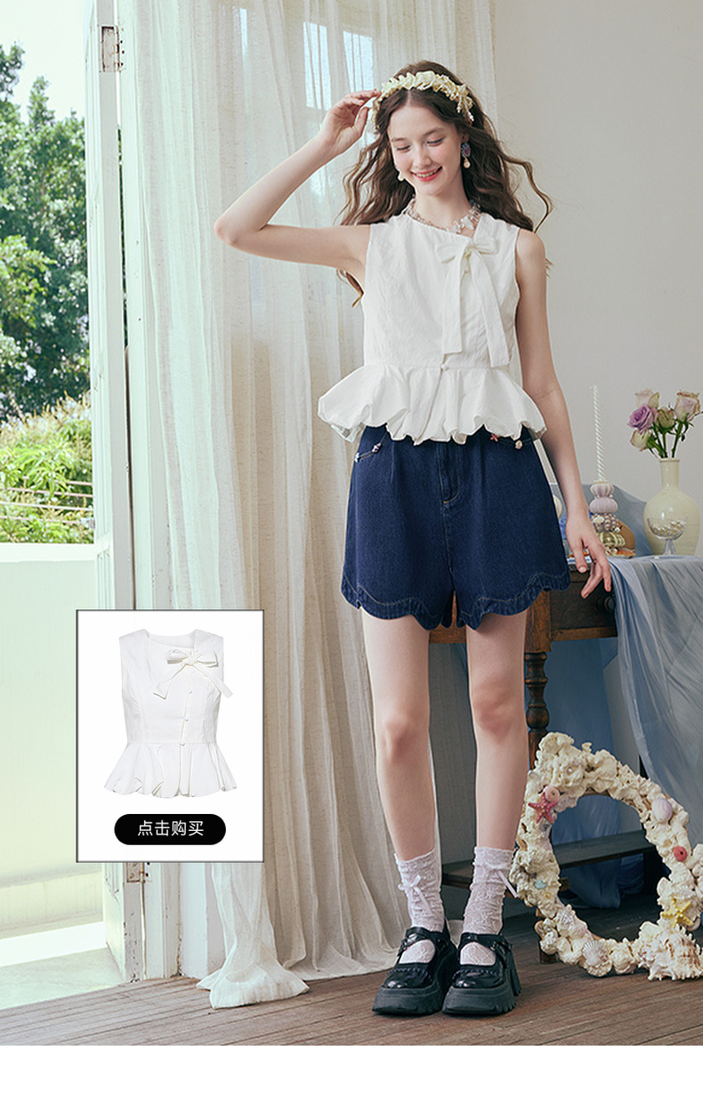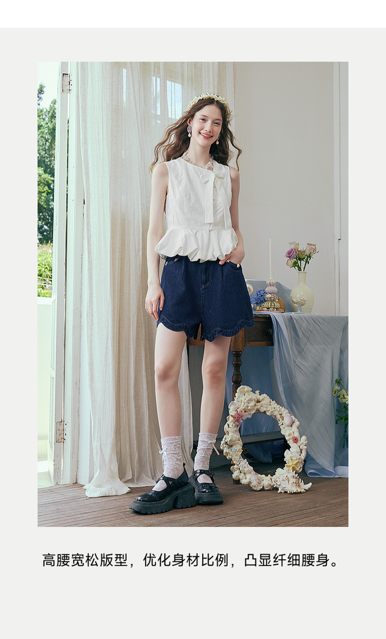 两三事一人相伴 春夏新款时尚单边背带裙系扣高腰牛仔半身裙S23CKB050