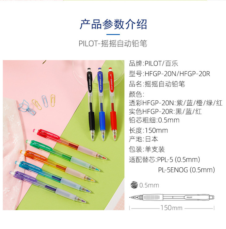PILOT/百乐HFGP-20N-SL透明摇摇自动铅笔