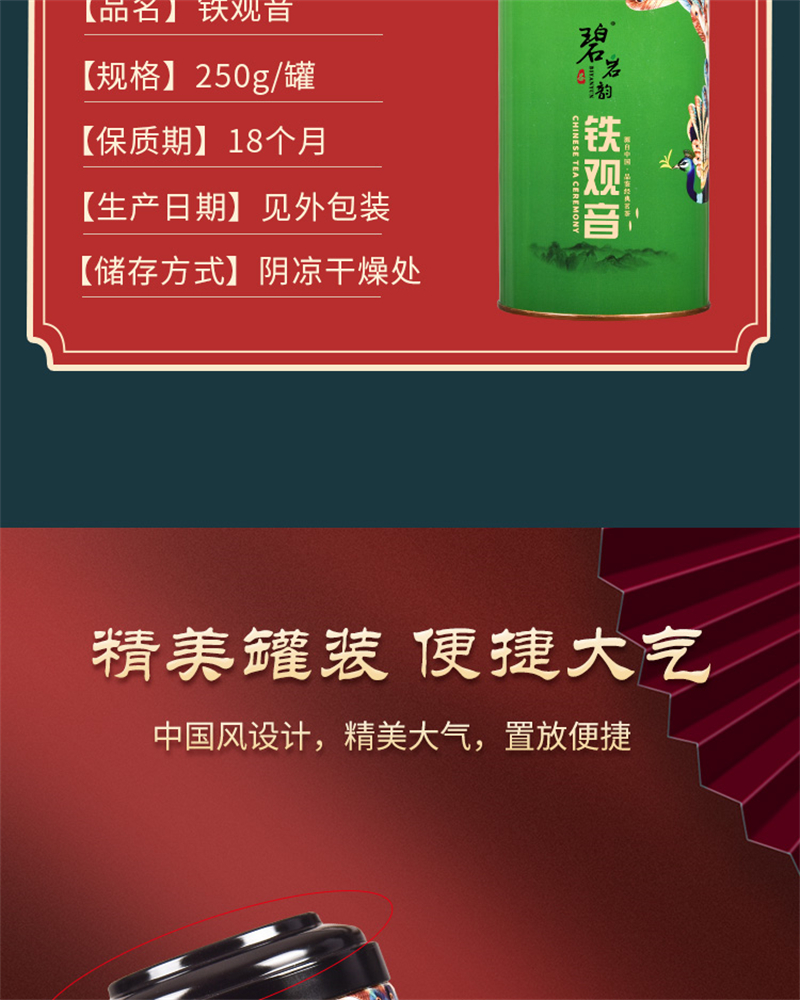 【自营】碧岩韵茶孔雀绿罐铁观音250g