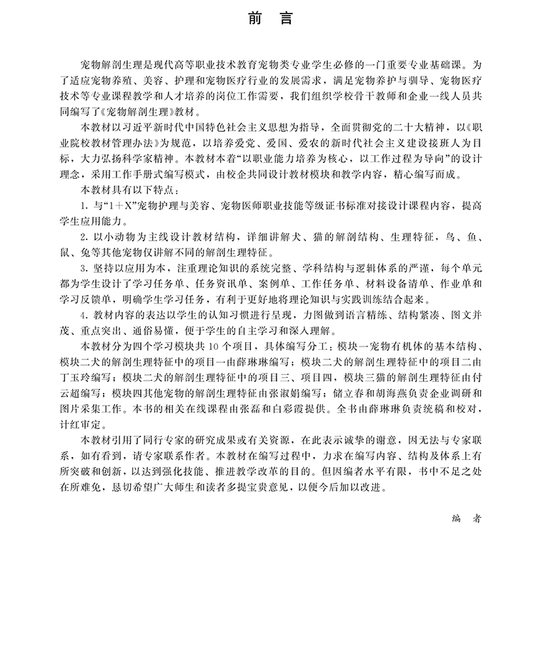 薛琳琳:硕士研究生,副教授,主讲宠物解剖生理和动物解剖生理,教龄16年。副主编北京师范大学出版社的《动物解剖生理》教材和天津科学技术出版社的《养猪与猪病防治》教材,参编中国农业大学出版社的《动物生理》教材。