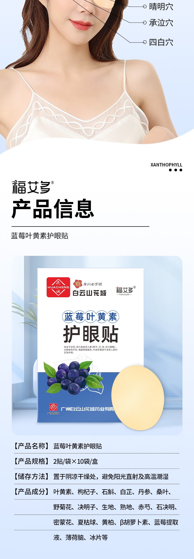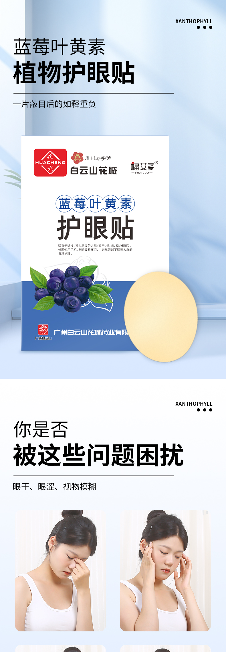【拍一发二 】白云山花城眼贴蓝莓叶黄素护眼贴20贴/盒缓解眼疲劳艾草护眼贴