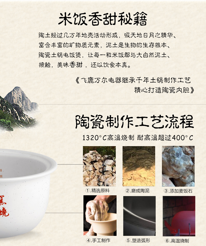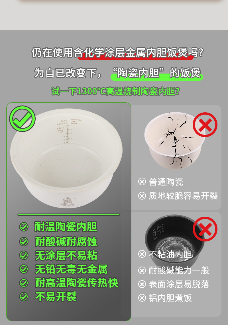 ⑥*陶瓷内胆是属于易碎品,不属于保修范围,请小心使用.