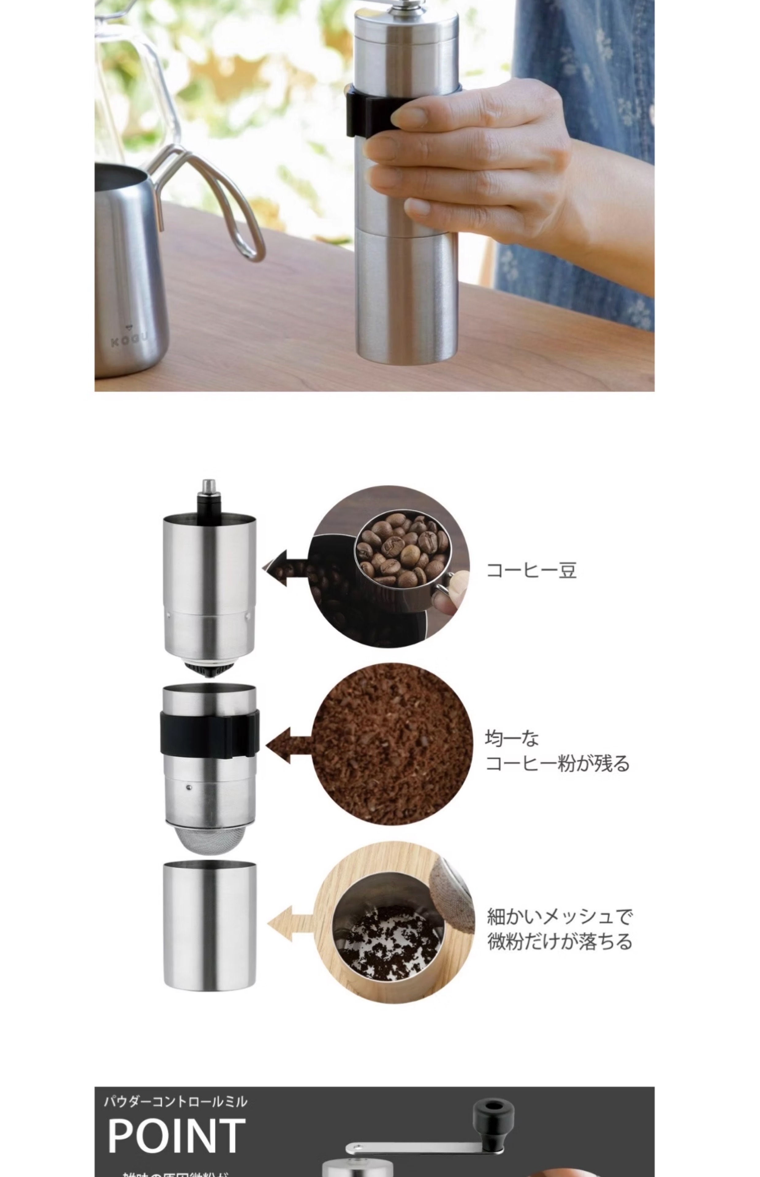 进口kogu咖啡考具手冲咖啡露营便携粗细粉磨豆器