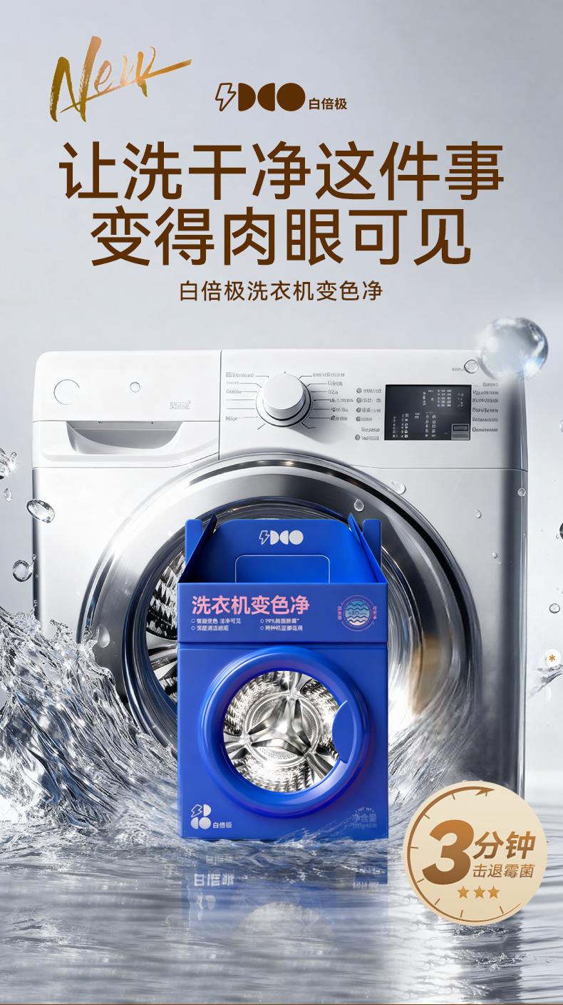 【白倍极洗衣机变色净】【正装支持免费试用一袋!!】 免浸泡+可视变色超直观 清洁效果看得见 每袋独立包装,不惧氧化&受潮