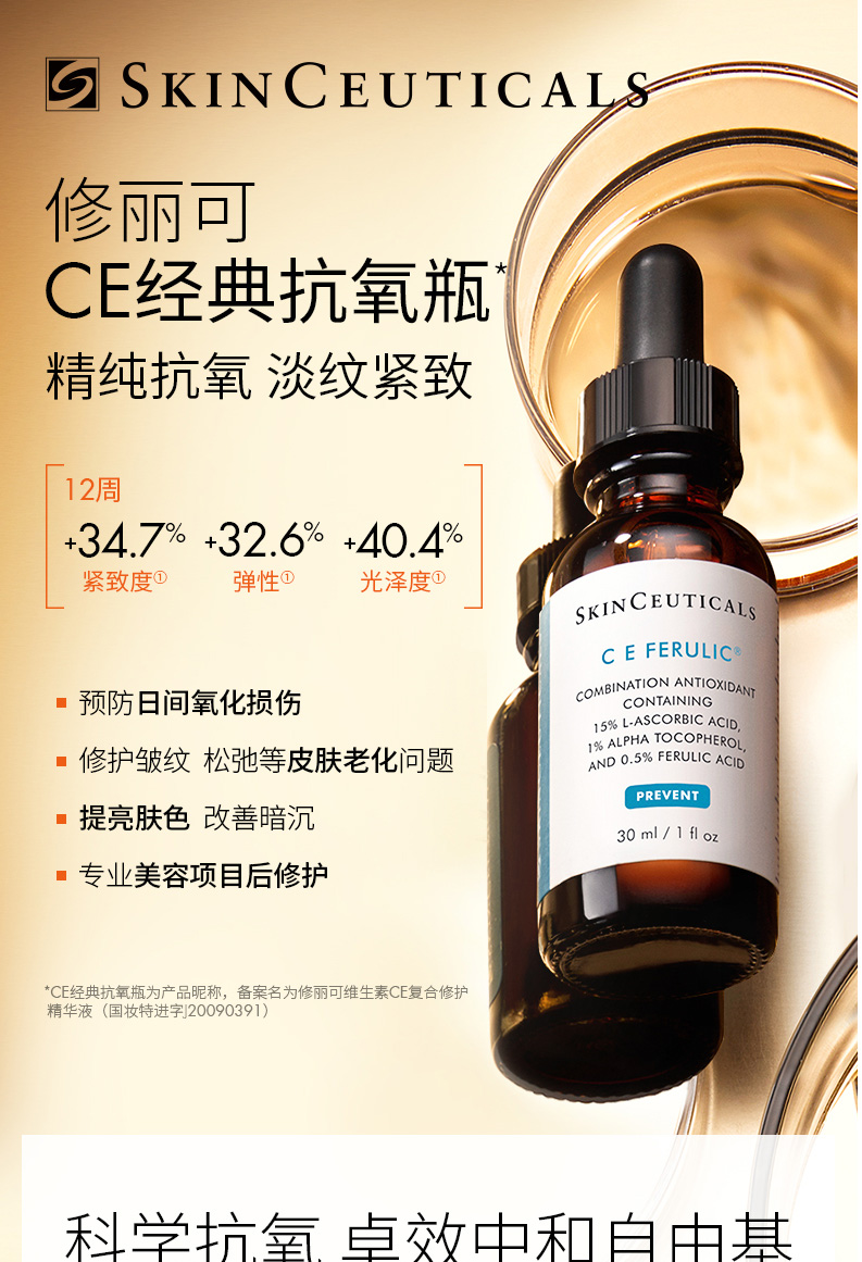 修丽可维生素CE复合修护精华液30ml刮码/55m源码 带防伪