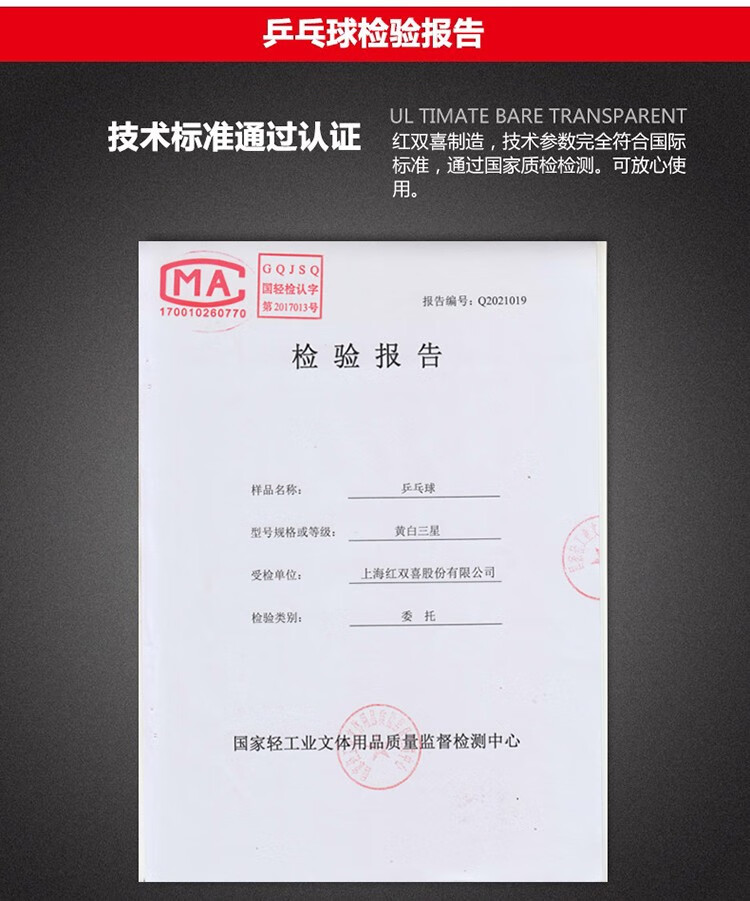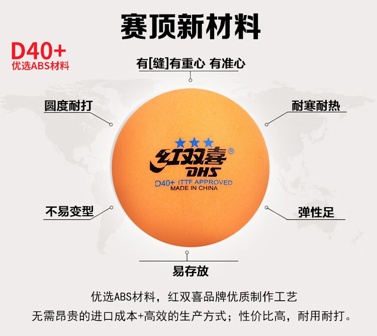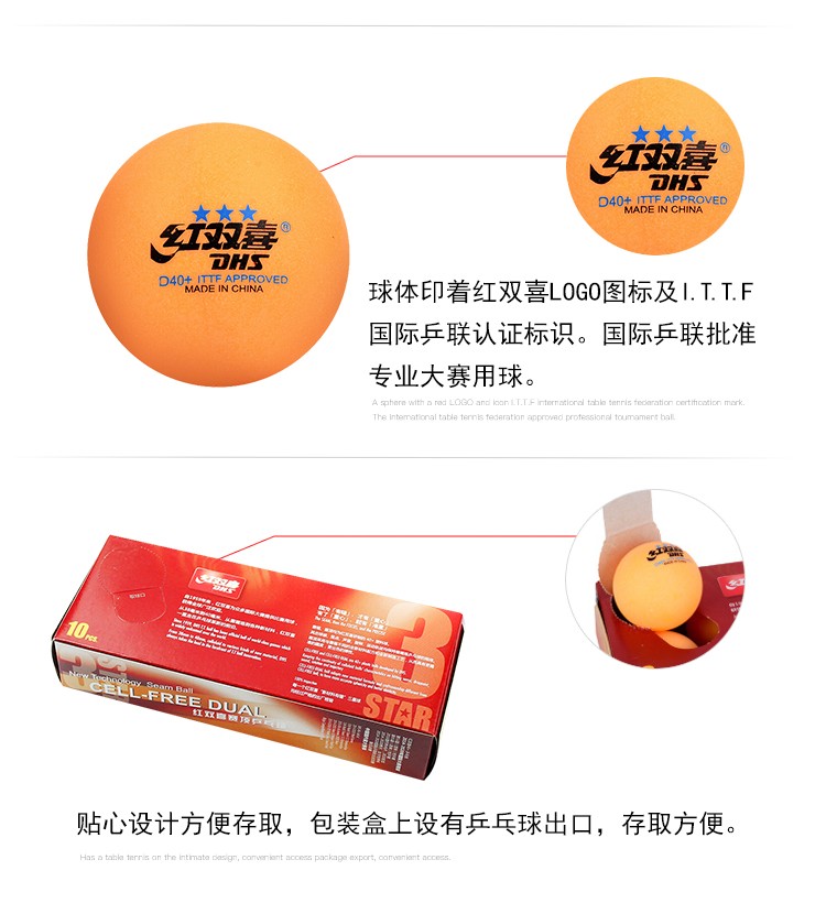 CD40A0 --红双喜赛顶三星40mm+乒乓球(十只装)