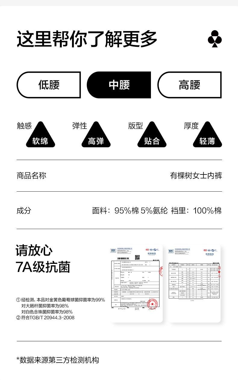 【新品上新】【桑蚕丝易净裆】有棵树10A抗菌纯棉裆中腰女士三角内裤4条装-4009C