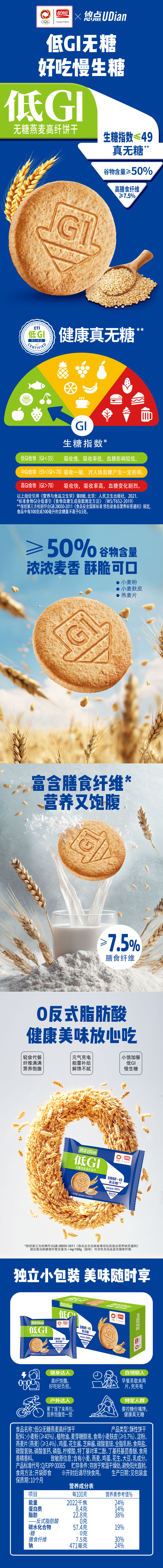 盼盼 悠点低GI无糖燕麦高纤饼干216g