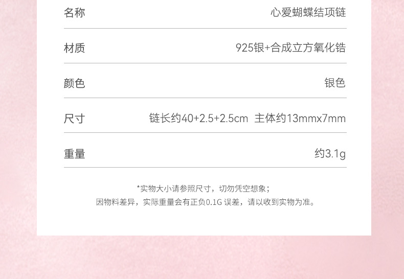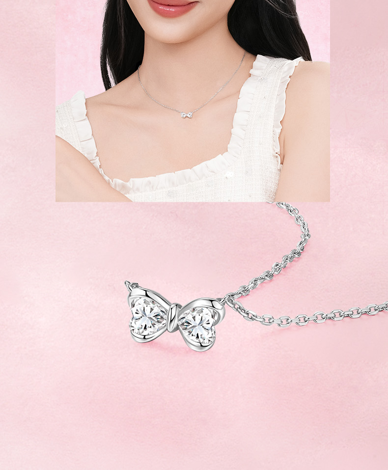 FANCI范琦 心爱蝴蝶结项链 925银爱心蝴蝶锁骨链