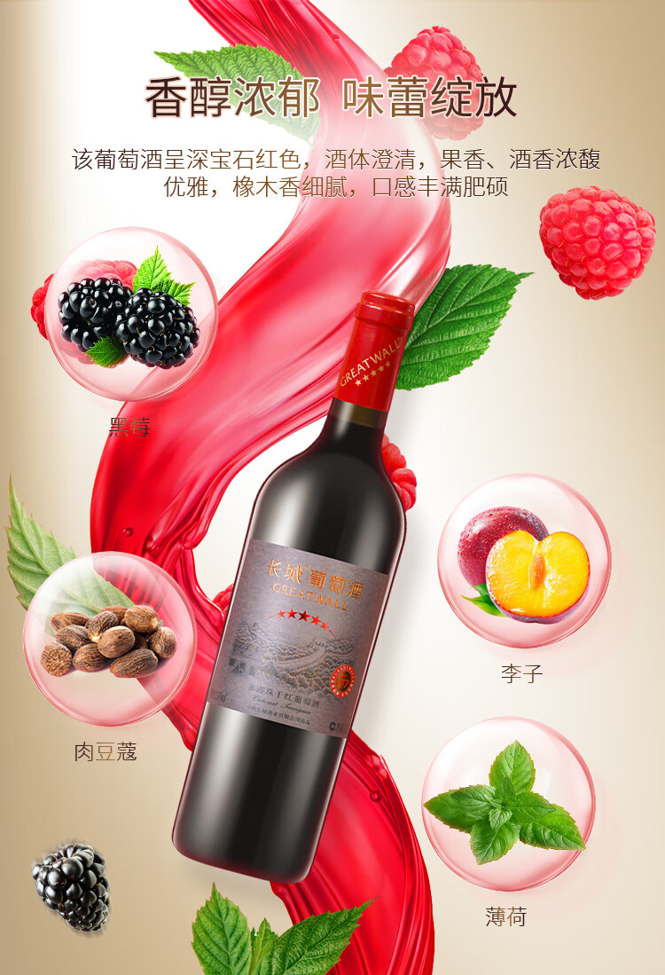 长城五星赤霞珠干红 整箱750mlx6瓶包邮