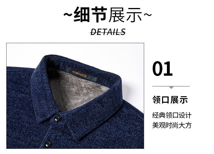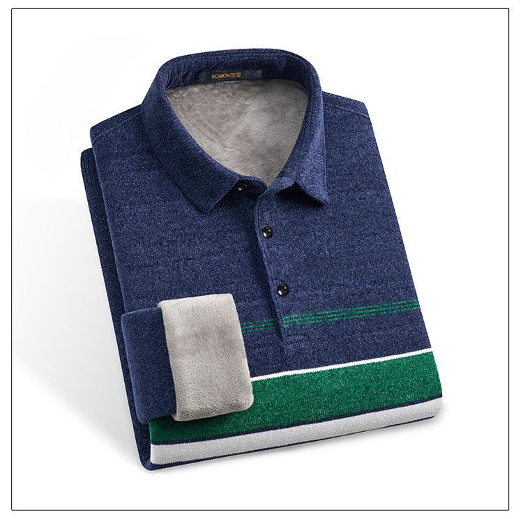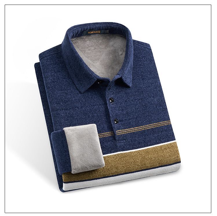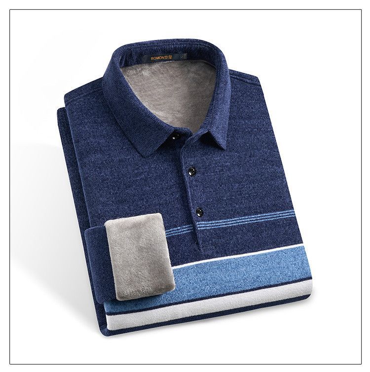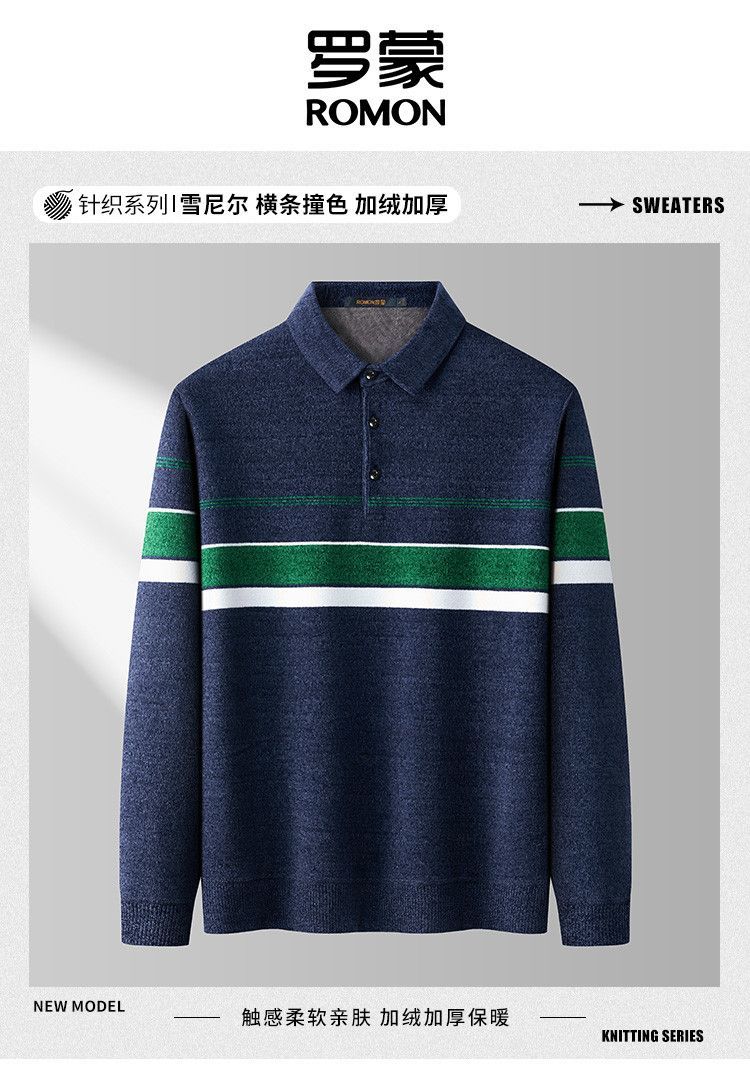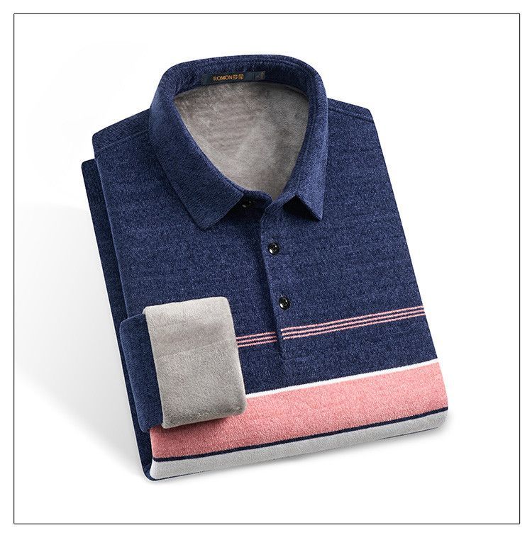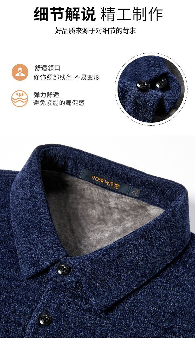 【加绒加厚】罗蒙秋冬速暖仿羊绒polo衫男长袖t恤休闲时尚男士polo衫长袖