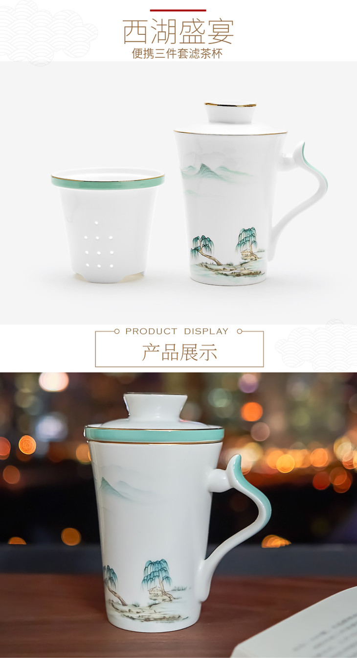 西湖盛宴便携三件套滤茶杯