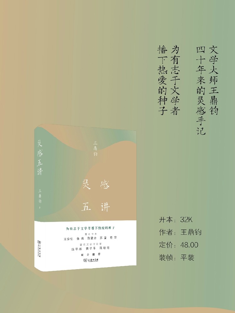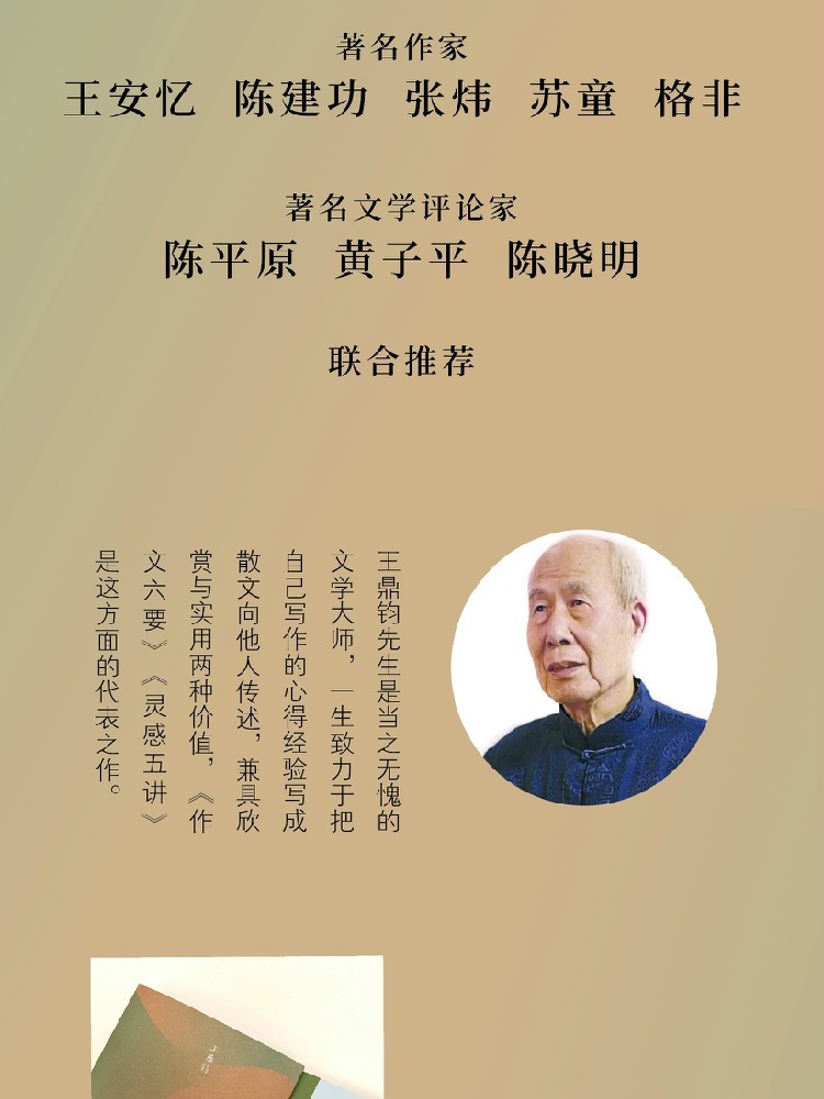 王鼎钧,1925年生,山东省兰陵人,1949年到台湾,曾担任多家报刊副刊的主编,并在大专院校讲授写作课程。1978 年,移居美国。他的创作生涯长达半个多世纪,著作近四十种,涉及散文、小说、戏剧等多个领域,是当之无愧的散文大师。一生热心把自己的心得经验写成优美的散文向他人传述,兼具欣赏与实用两种价值,《作文六要》《灵感五讲》是这方面的代表作。