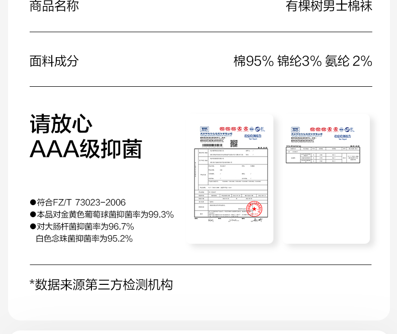 有棵树纯棉抑菌吸湿排汗男士中筒袜6双装C-O3002