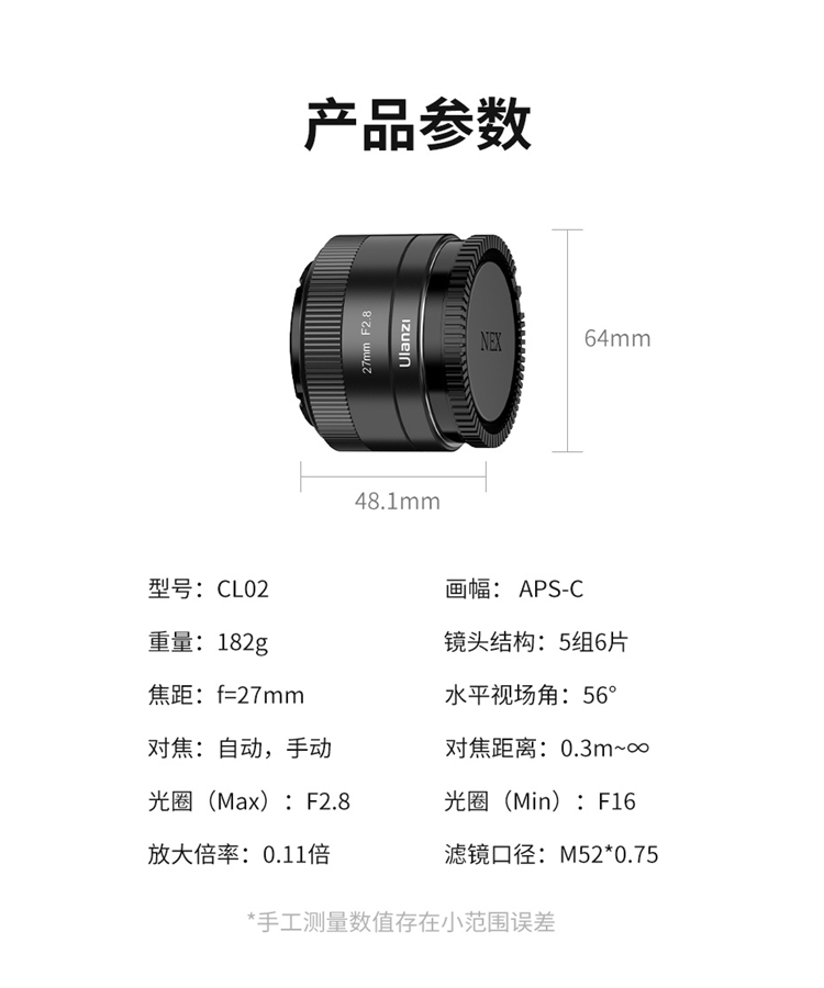 Ulanzi 优篮子 CL02 便携街拍自动镜头27mm F2.8索尼E口