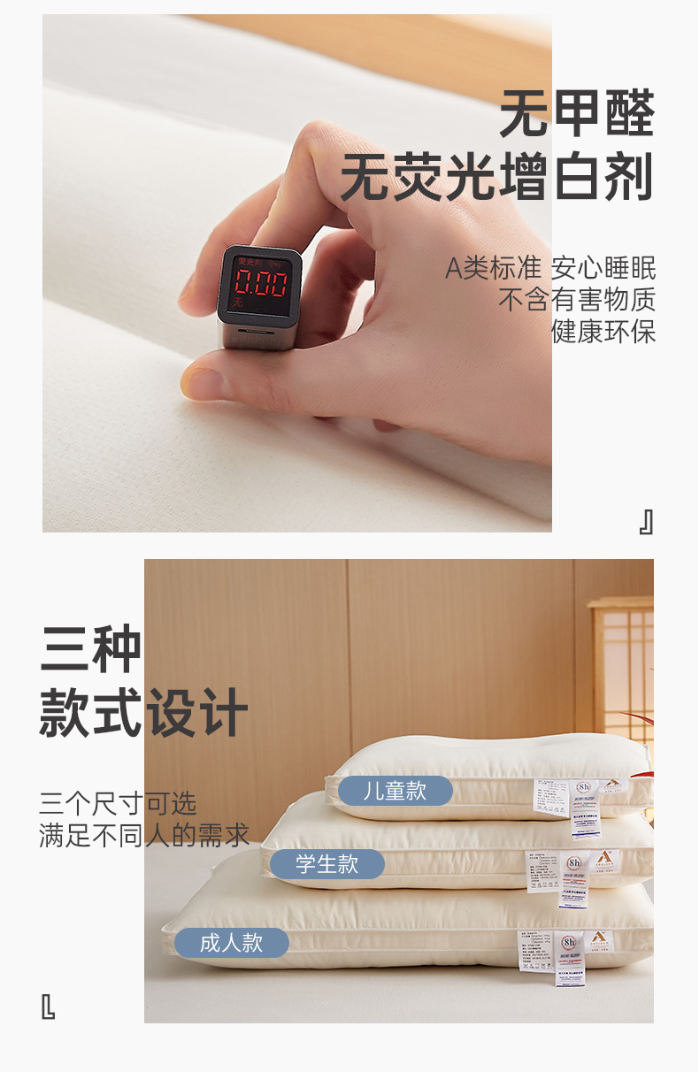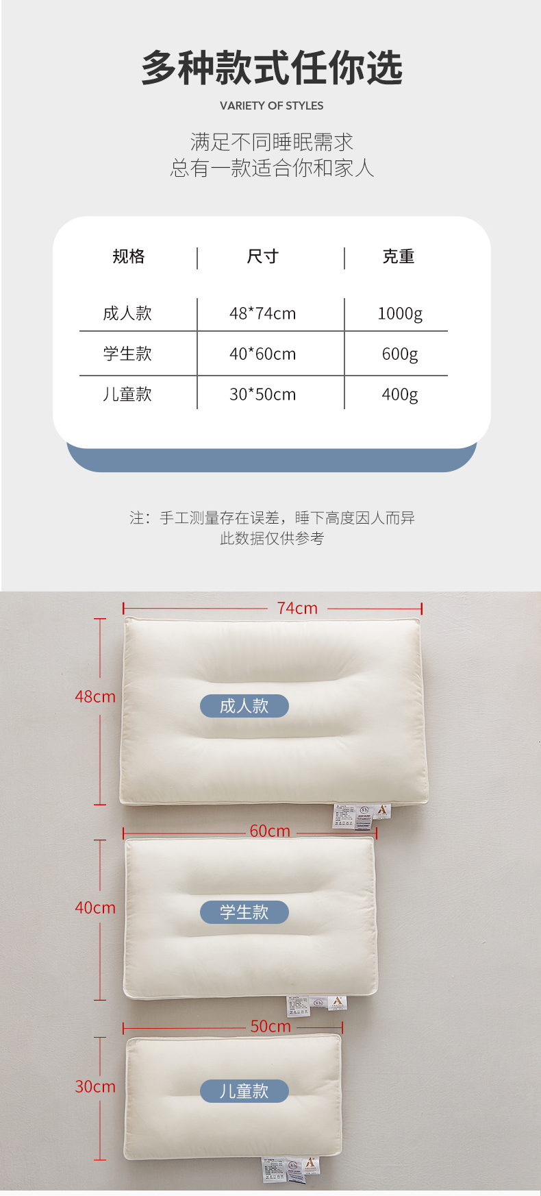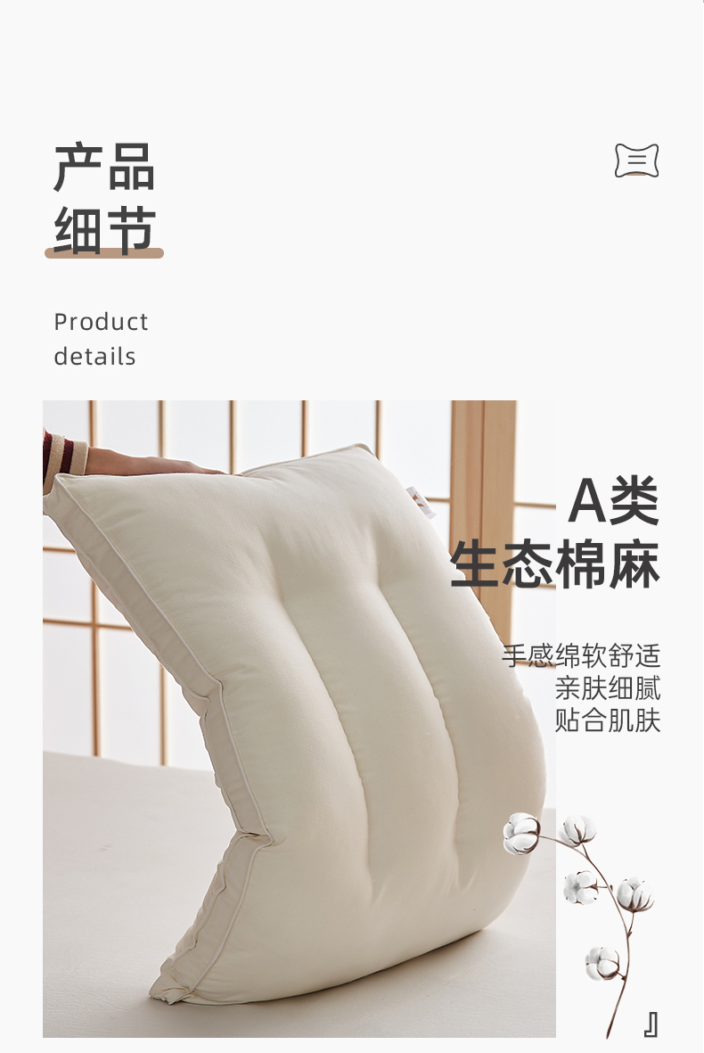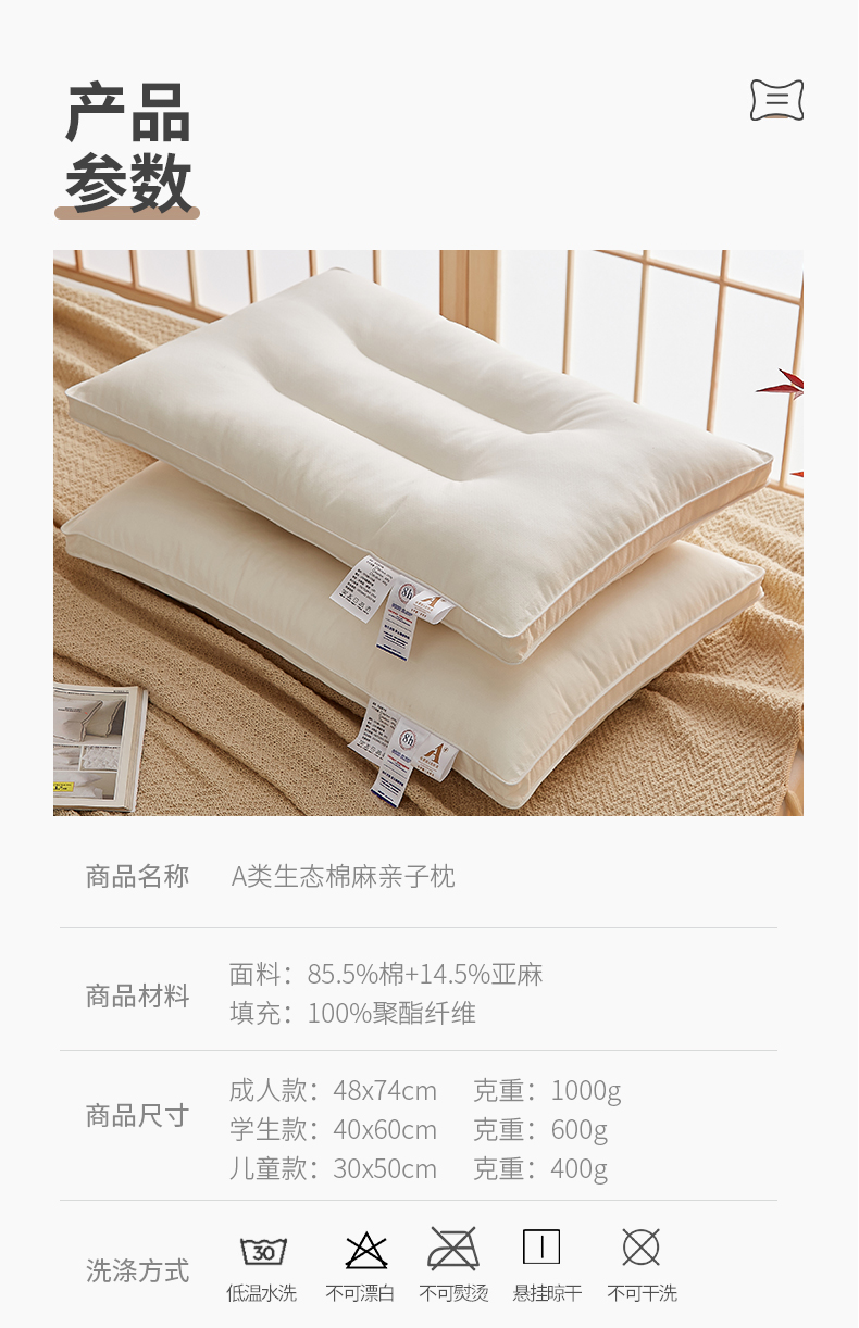 自然醒A类生态棉麻亲子枕芯护颈椎助睡眠家用一对装儿童学生宿舍成人低枕成人整头男XK