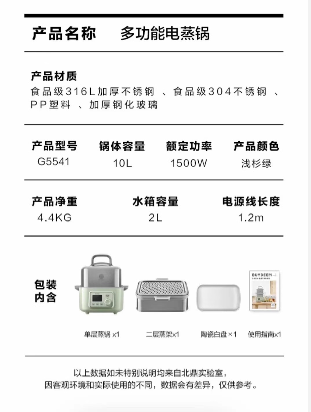 【小家电】北鼎电蒸锅G5541食品级材质入口安全双重保险防烧干加大加高炖锅 HF