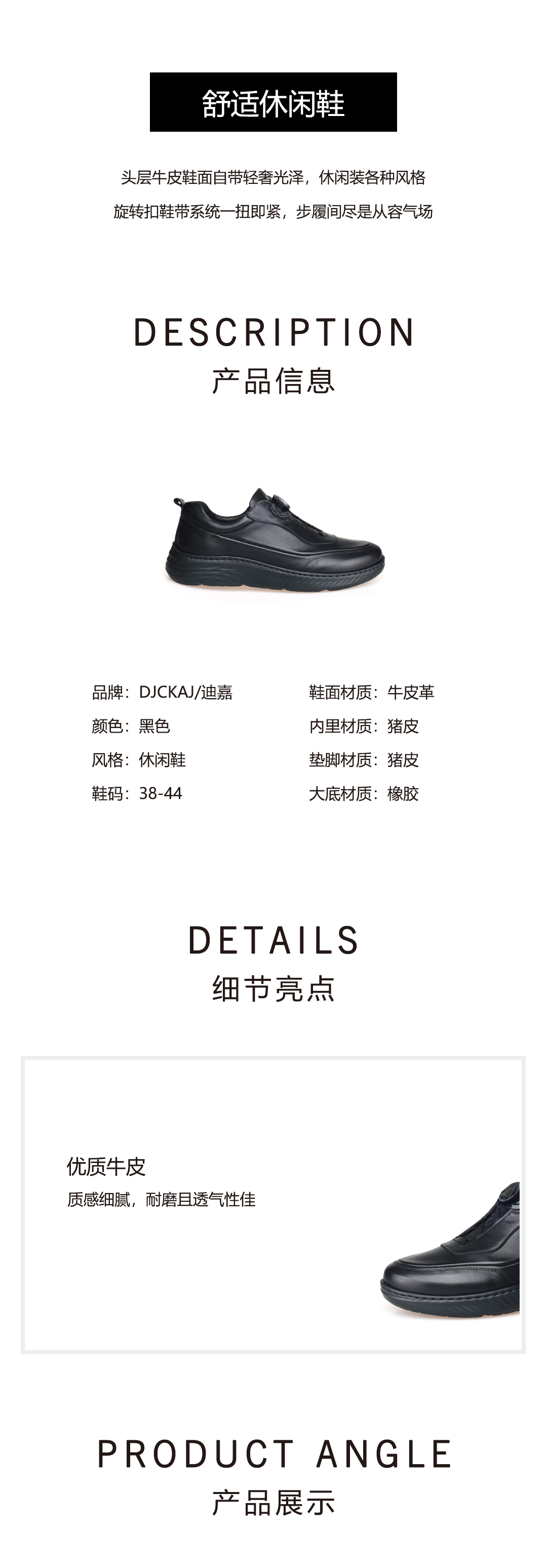 豪麟名鞋奥莱迪嘉男鞋牛皮革休闲鞋DJBDO52MX203黑色 原价1660元
