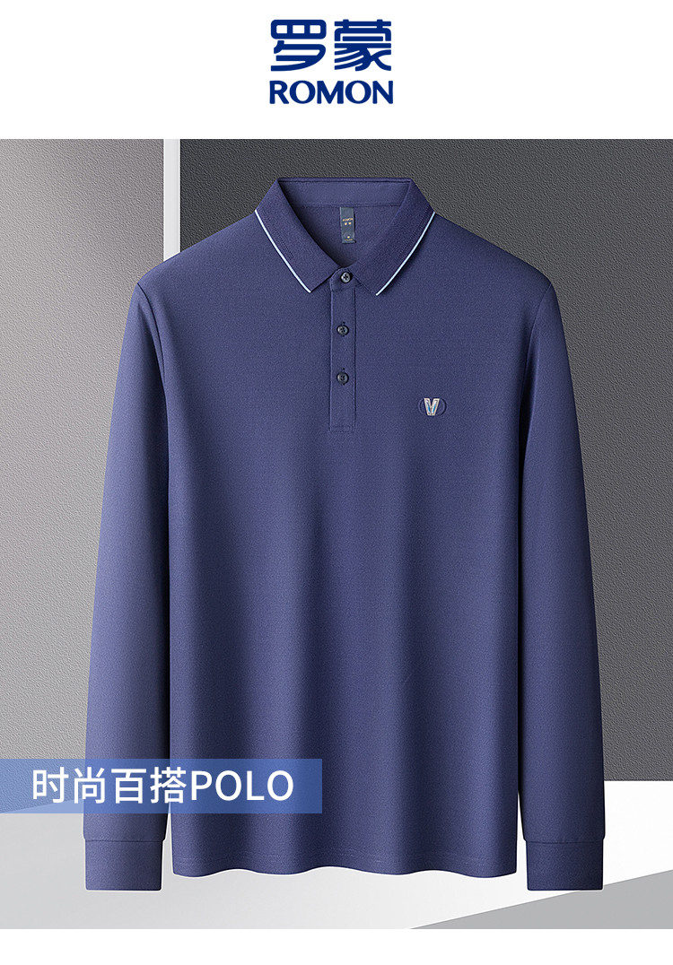 【高周波胸标】罗蒙春秋男士仿丝光polo衫男长袖t恤男商务男士polo衫