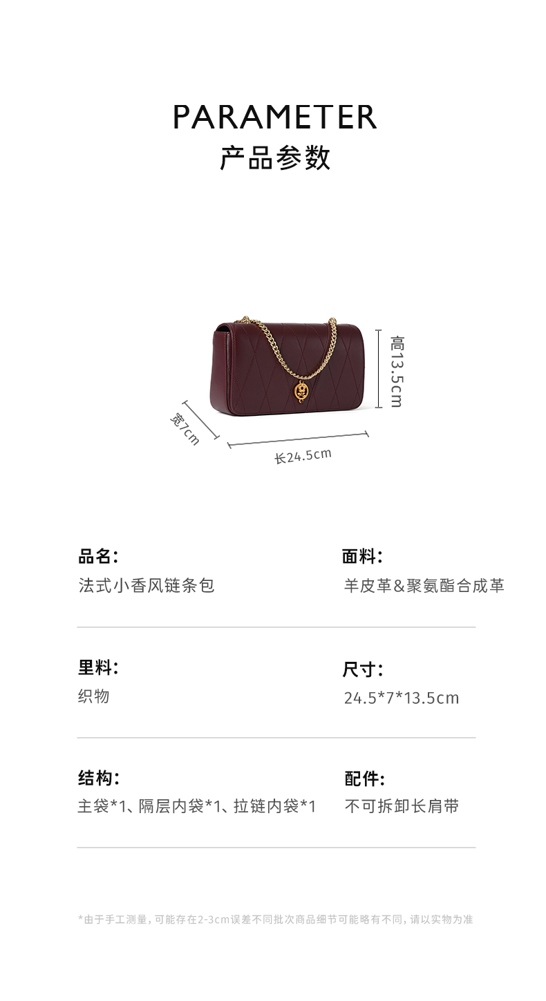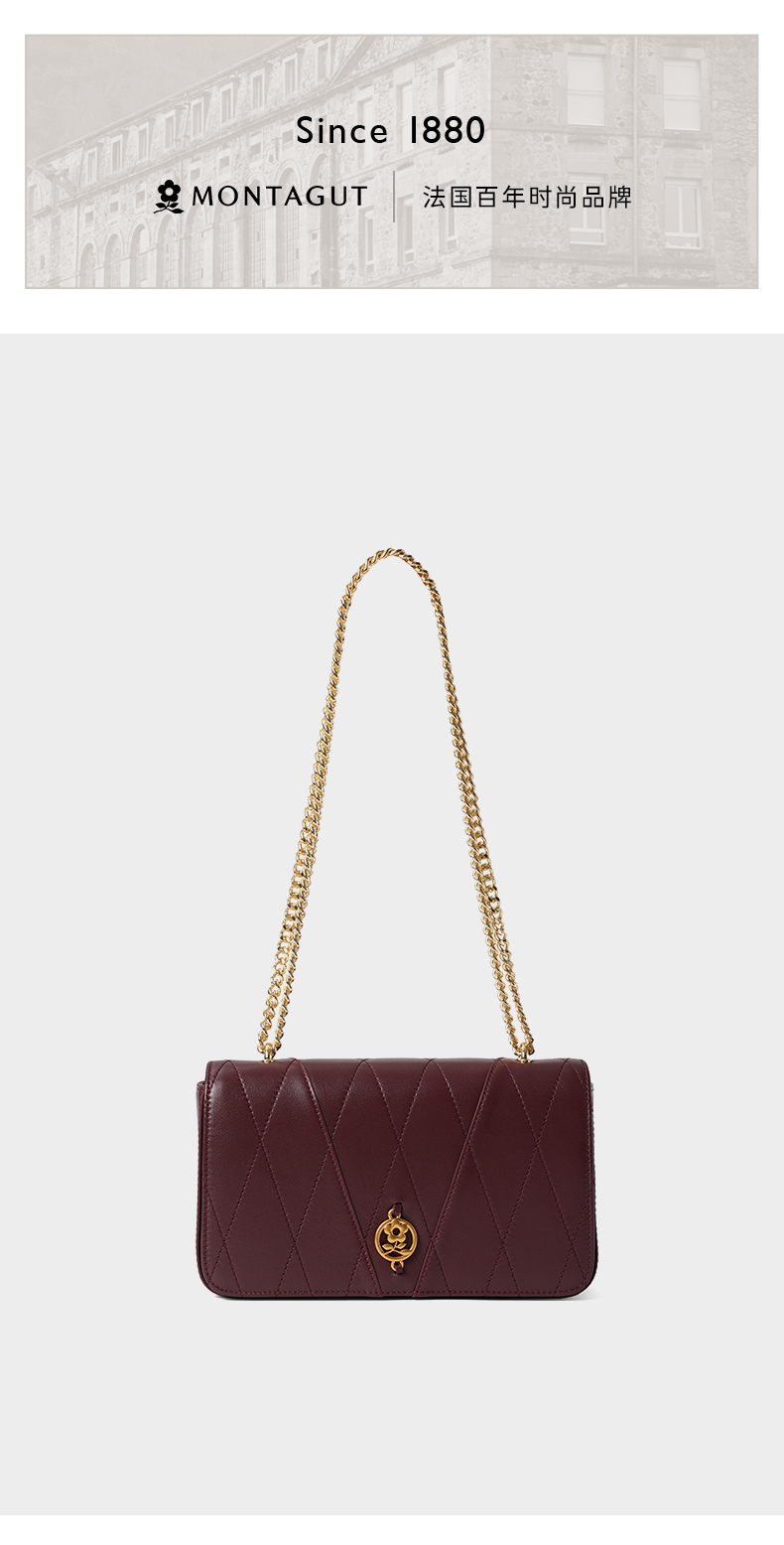 法国梦特娇秋冬精致羊皮链条单肩包斜挎包