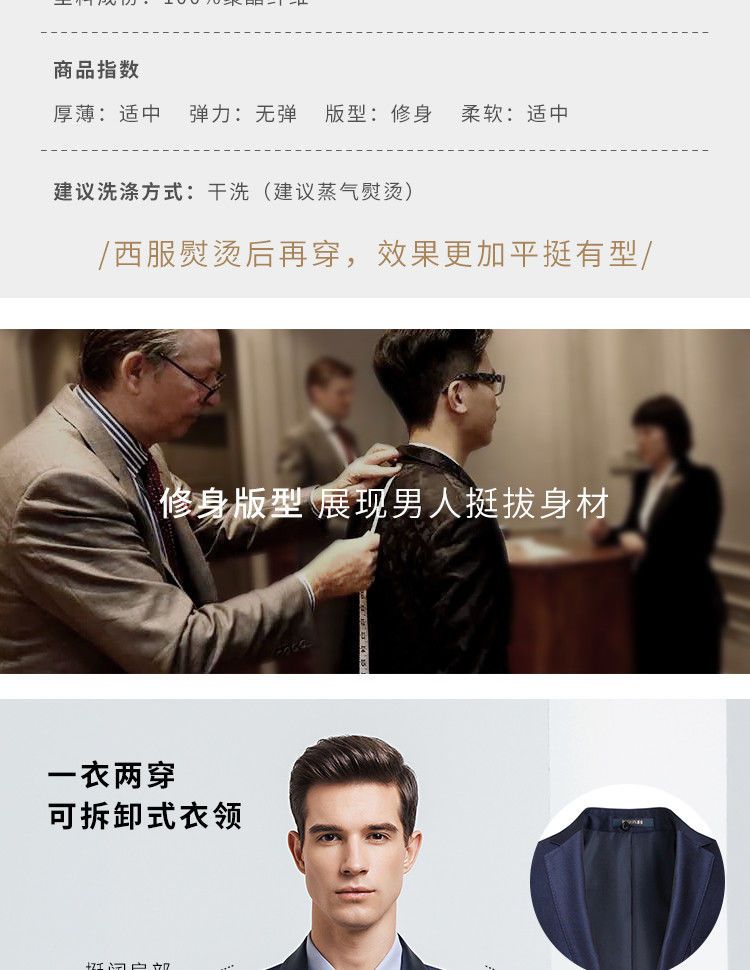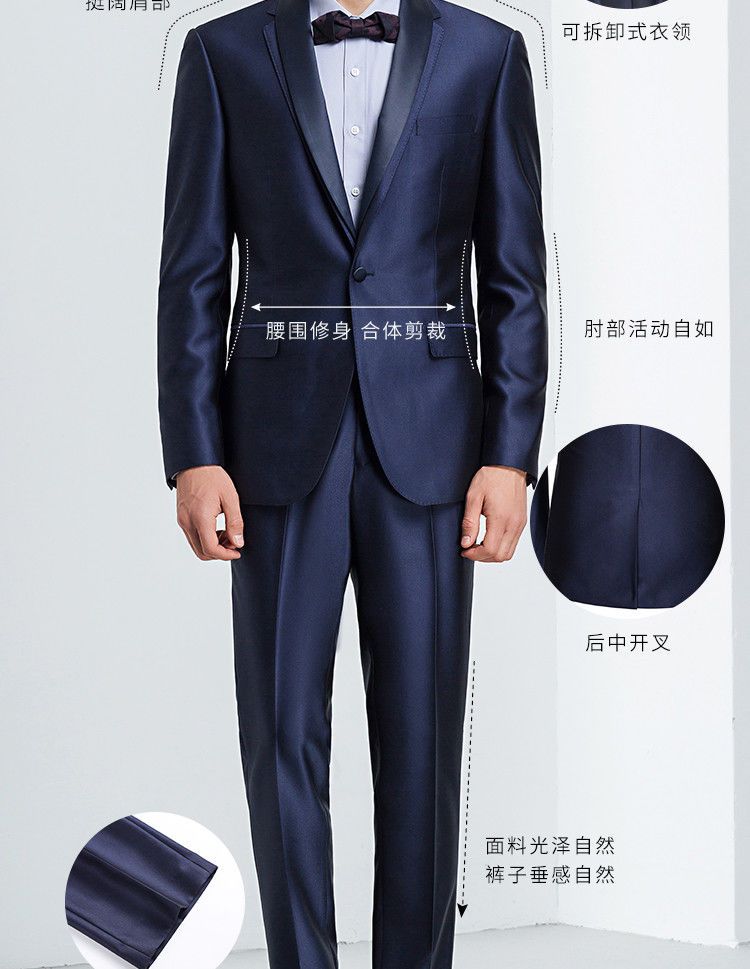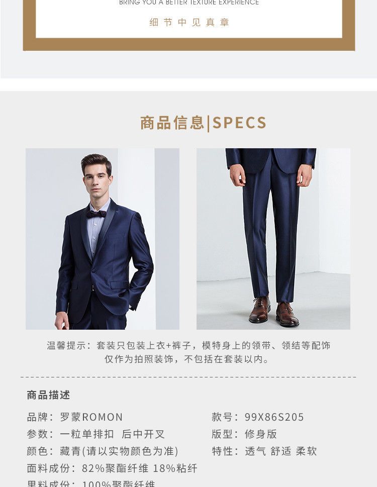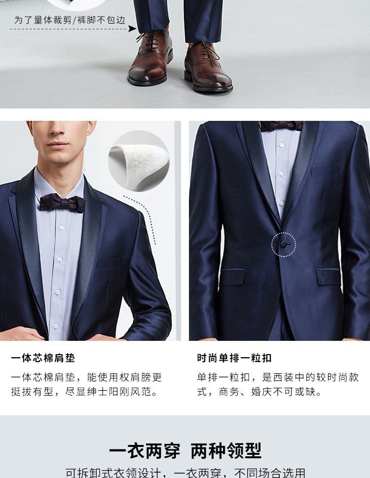 【上衣+裤子】罗蒙西装套装男士时尚修身可拆卸衣领新郎结婚礼服