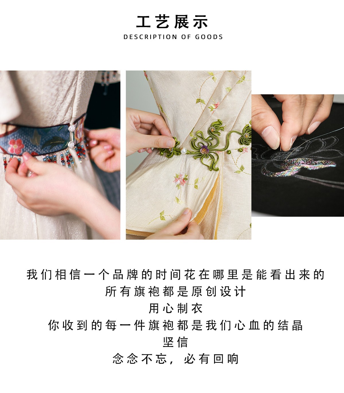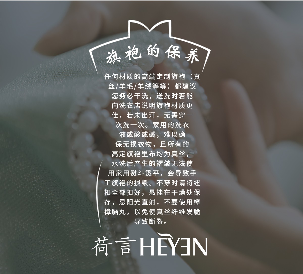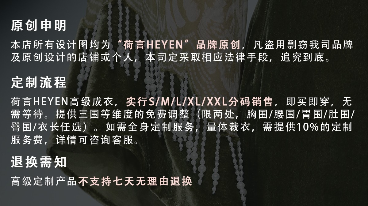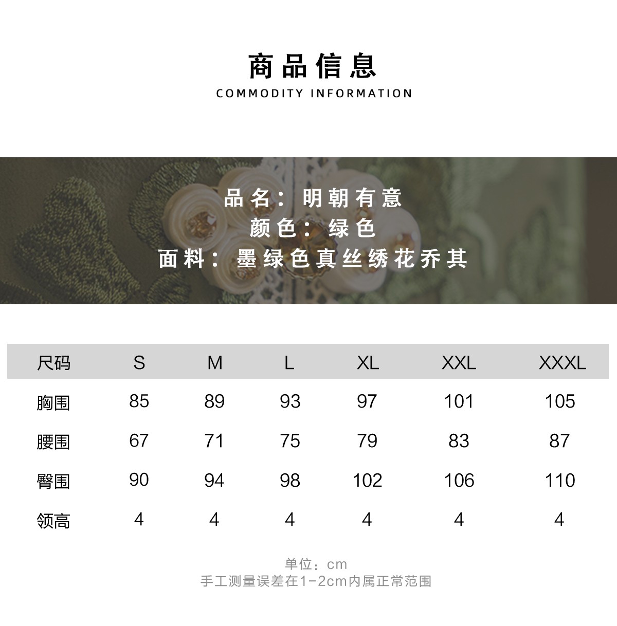 荷言HEYEN 明朝有意【明星同款金莎】 墨绿色绣花乔其面料+定珠钉珠流苏手工旗袍