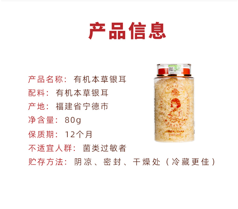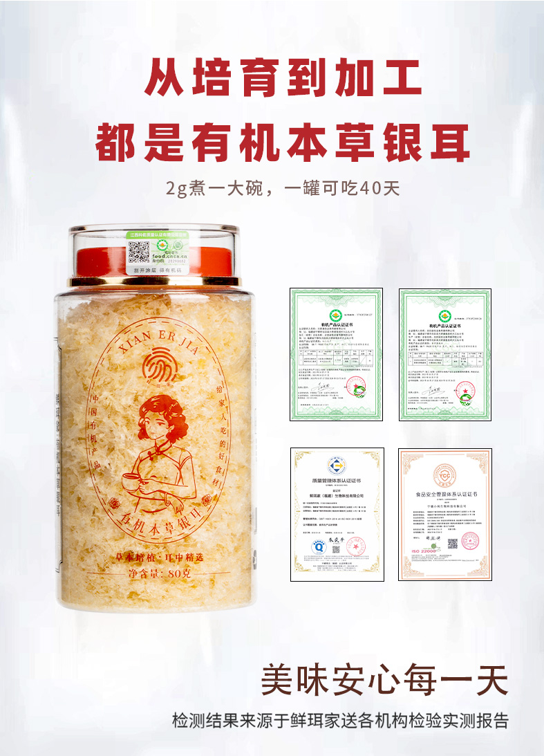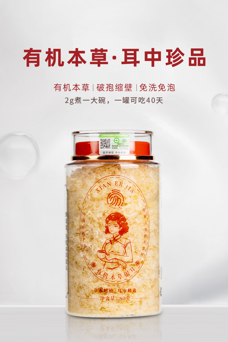 鲜珥家有机本草银耳礼盒装,野生菌种,12种草药培养基,破壁技术免煮免炖焖泡银耳!地标产品,双有机认证,一瓶一码,免洗免煮,懒人必备,快速出胶