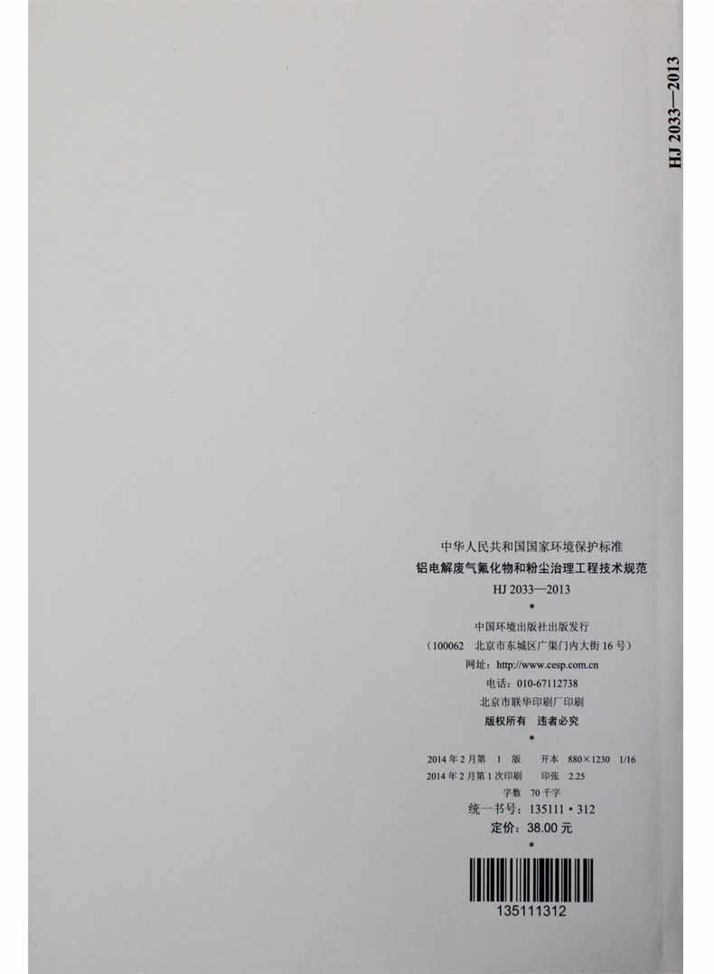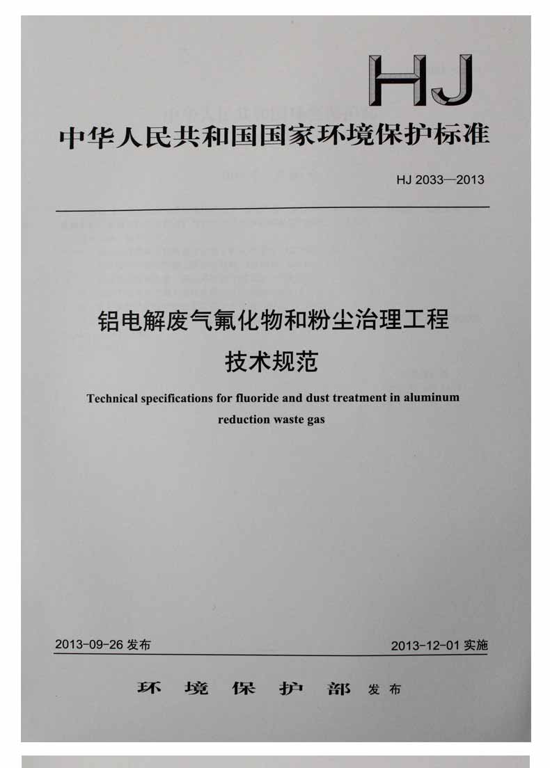 HJ 2033-2013 铝电解废气氟化物和粉尘治理工程技术规范