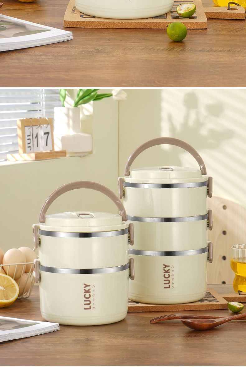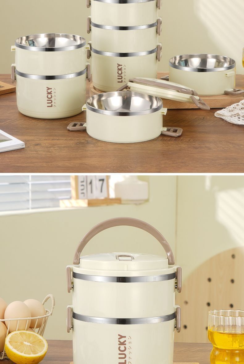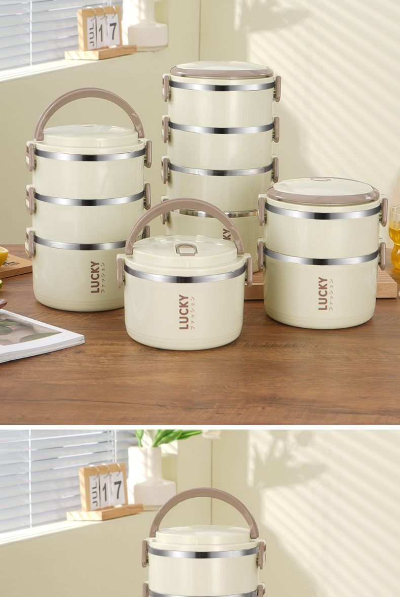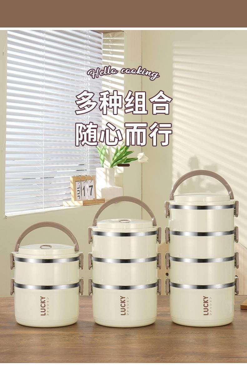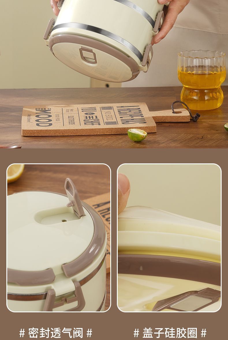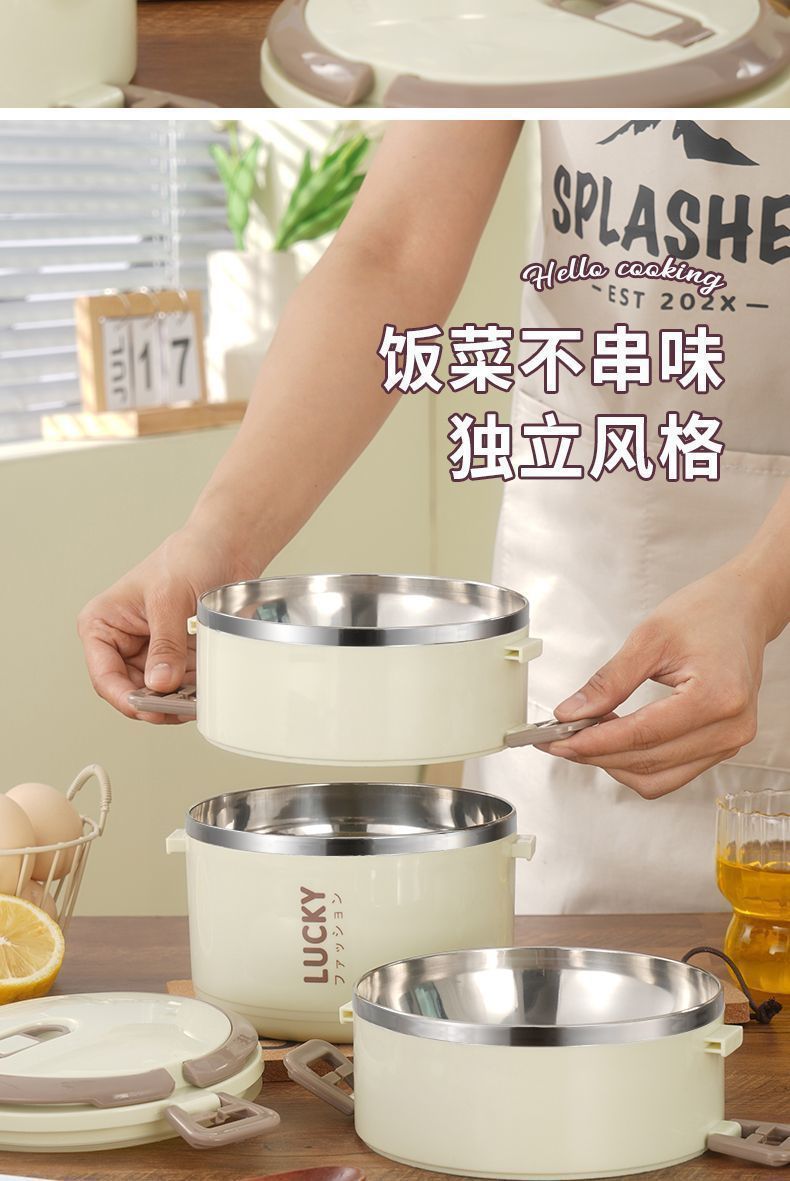 「多层可选!便携设计」便携圆型饭盒上班族加大加深大容量食品多层保温饭桶双层便当盒餐饮用具