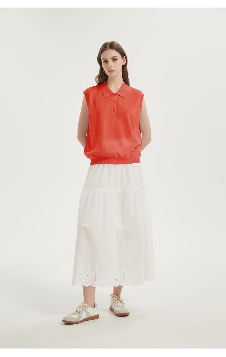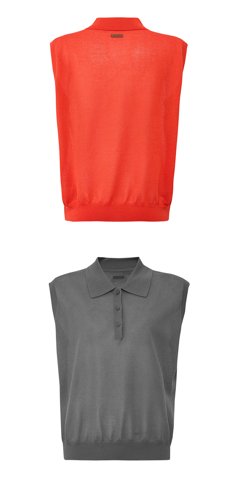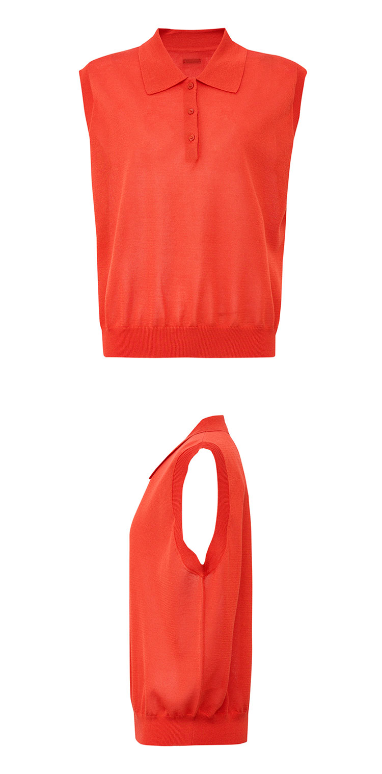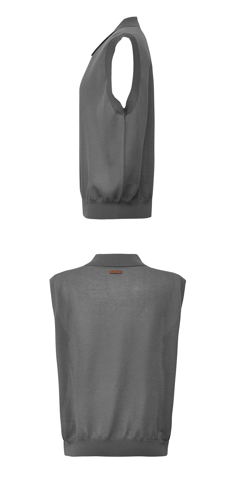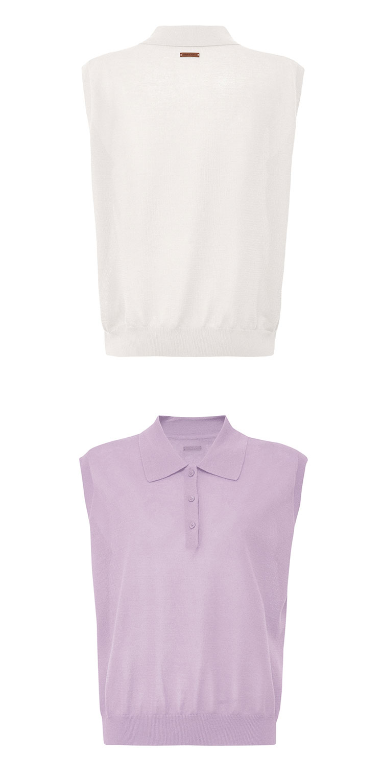 【2件9折】【Petit Bari】(多色)POLO领莱赛尔亚麻无袖针织上衣