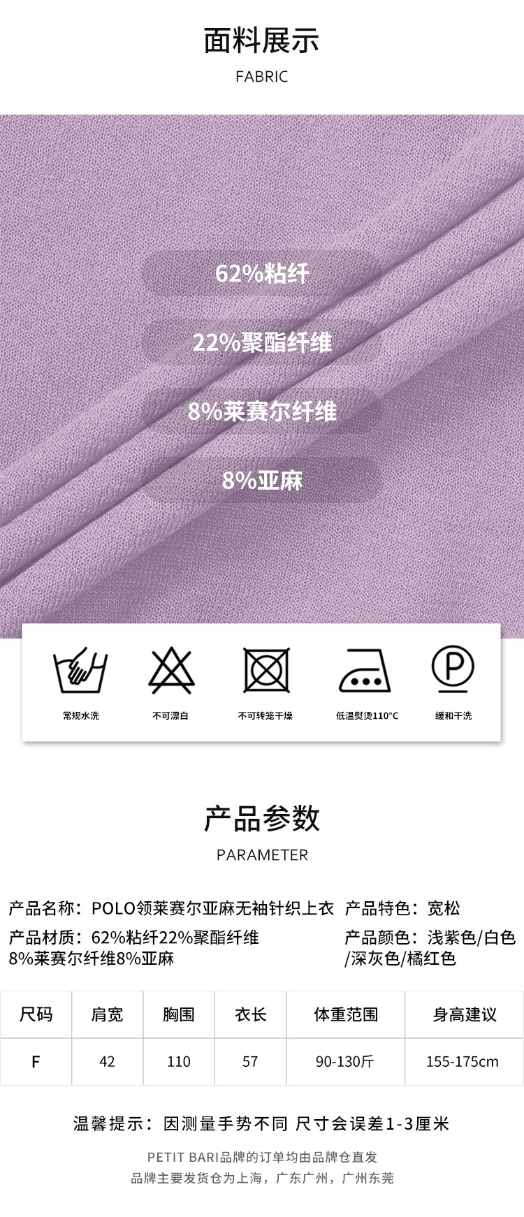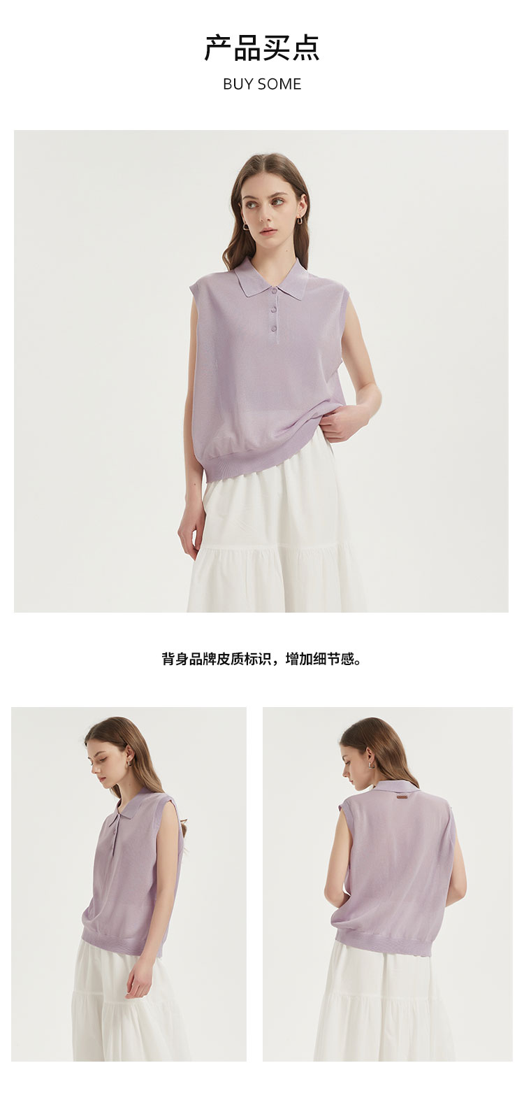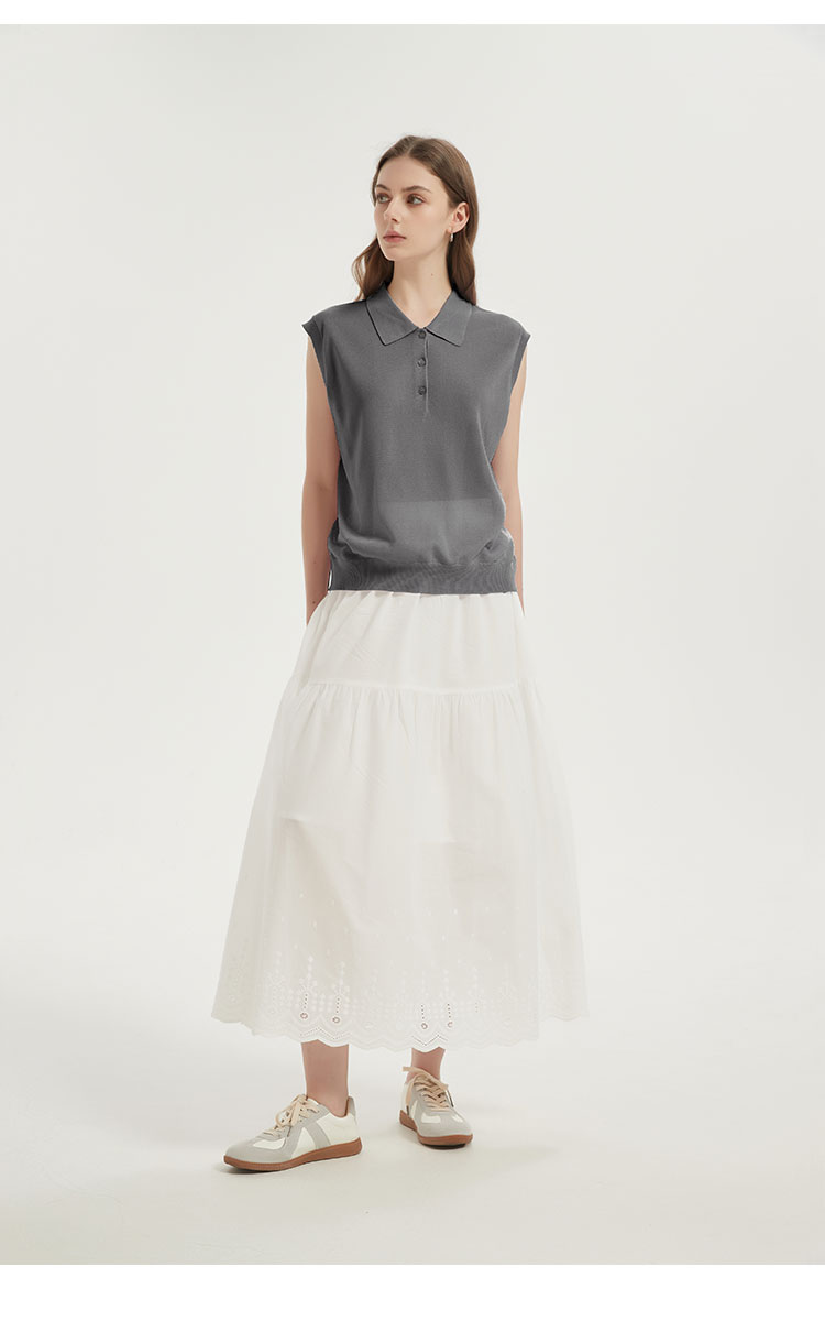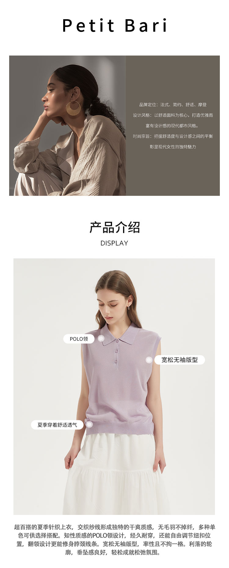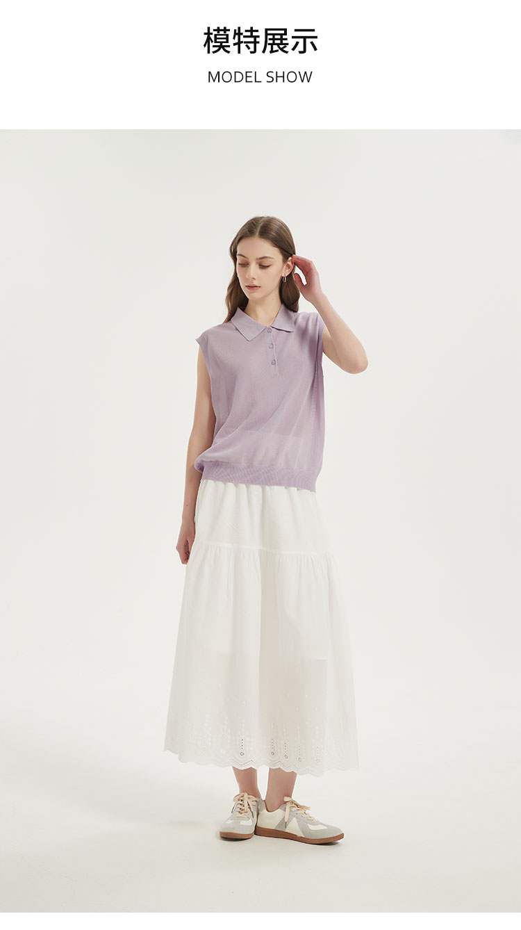 【2件9折】【Petit Bari】(多色)POLO领莱赛尔亚麻无袖针织上衣