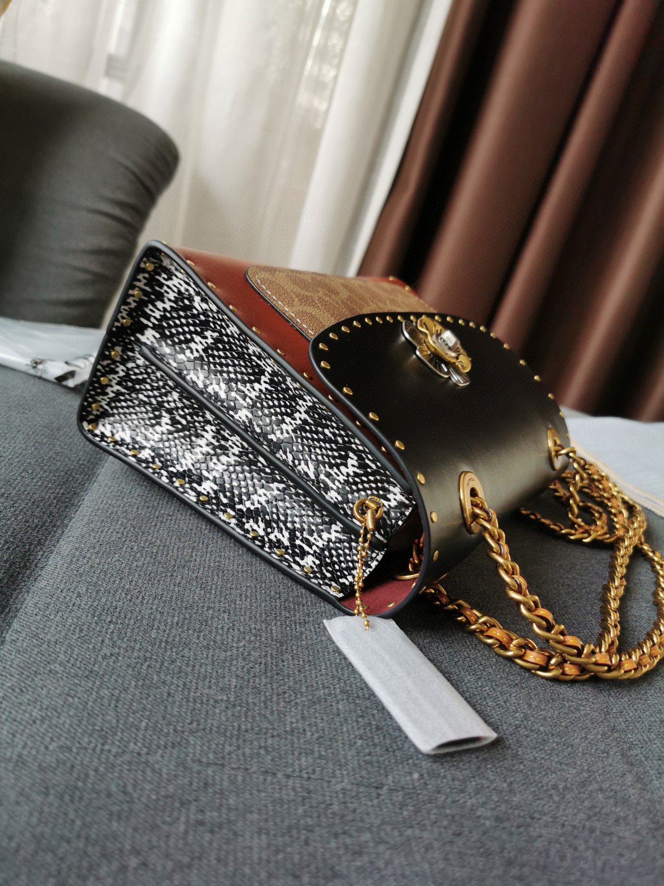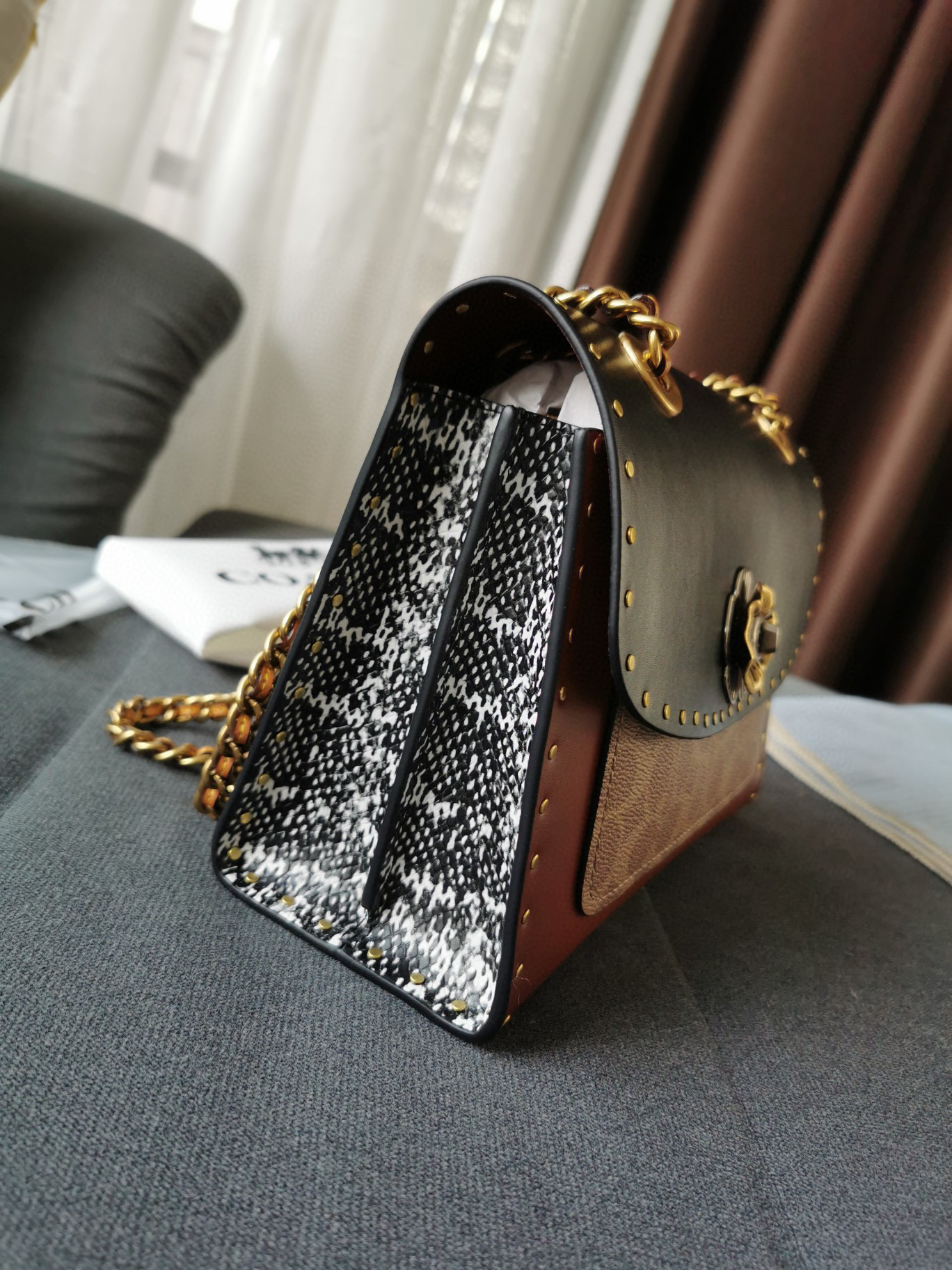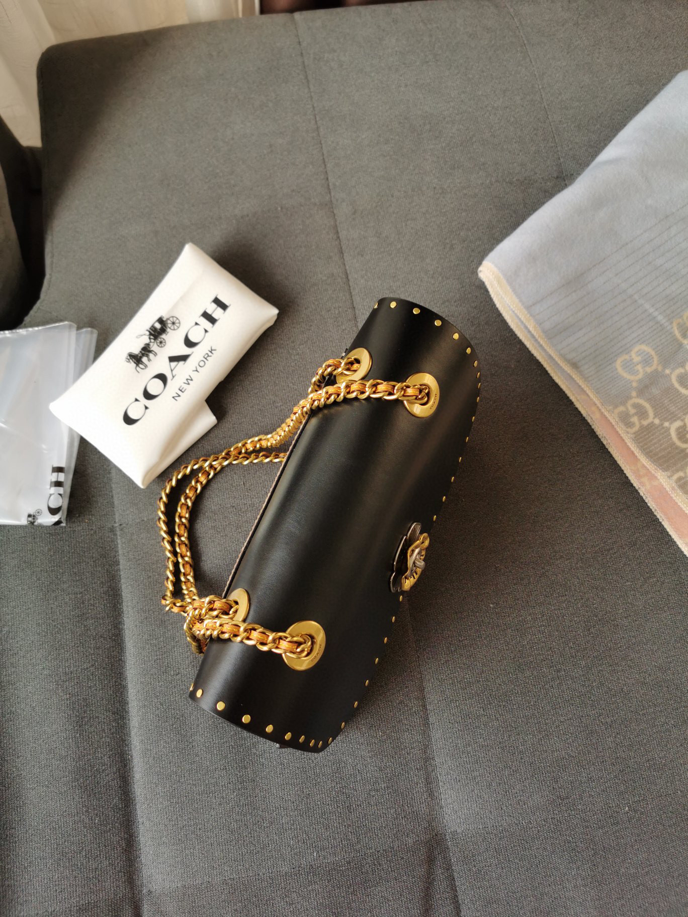 链条铆钉单肩斜挎包 这款经典款隔层设计容量惊人,简约而不简单