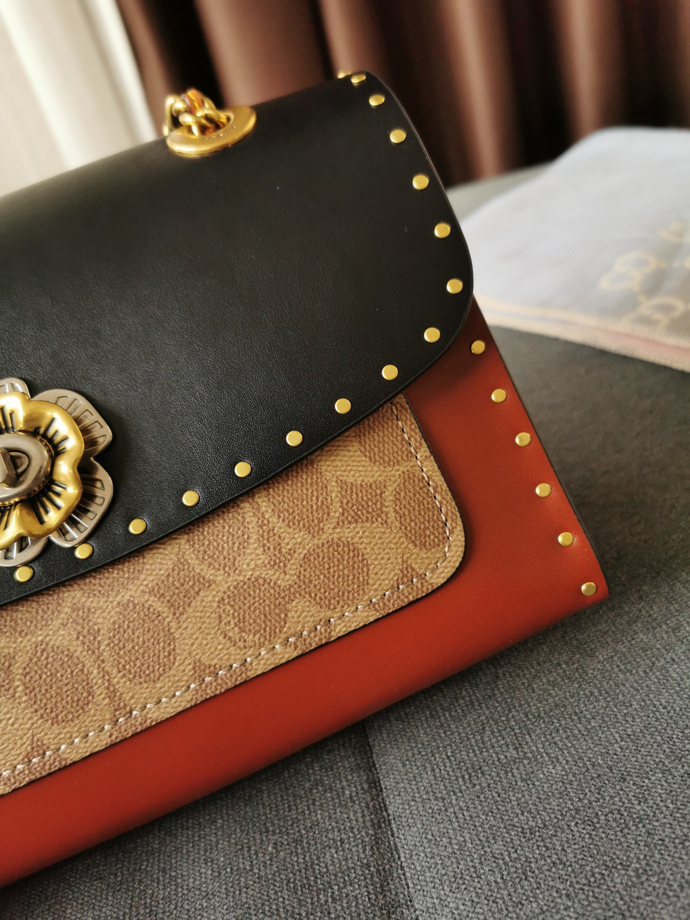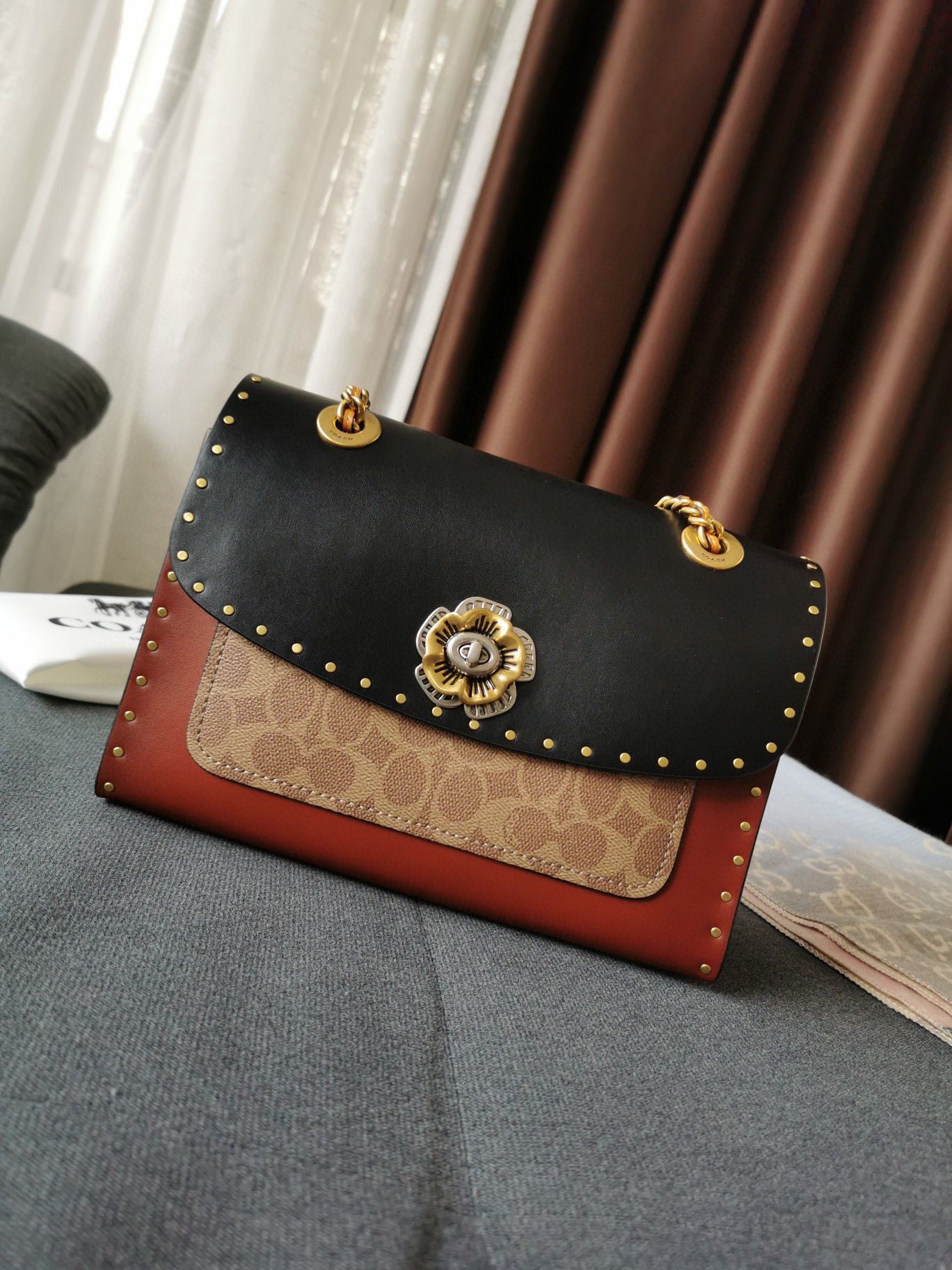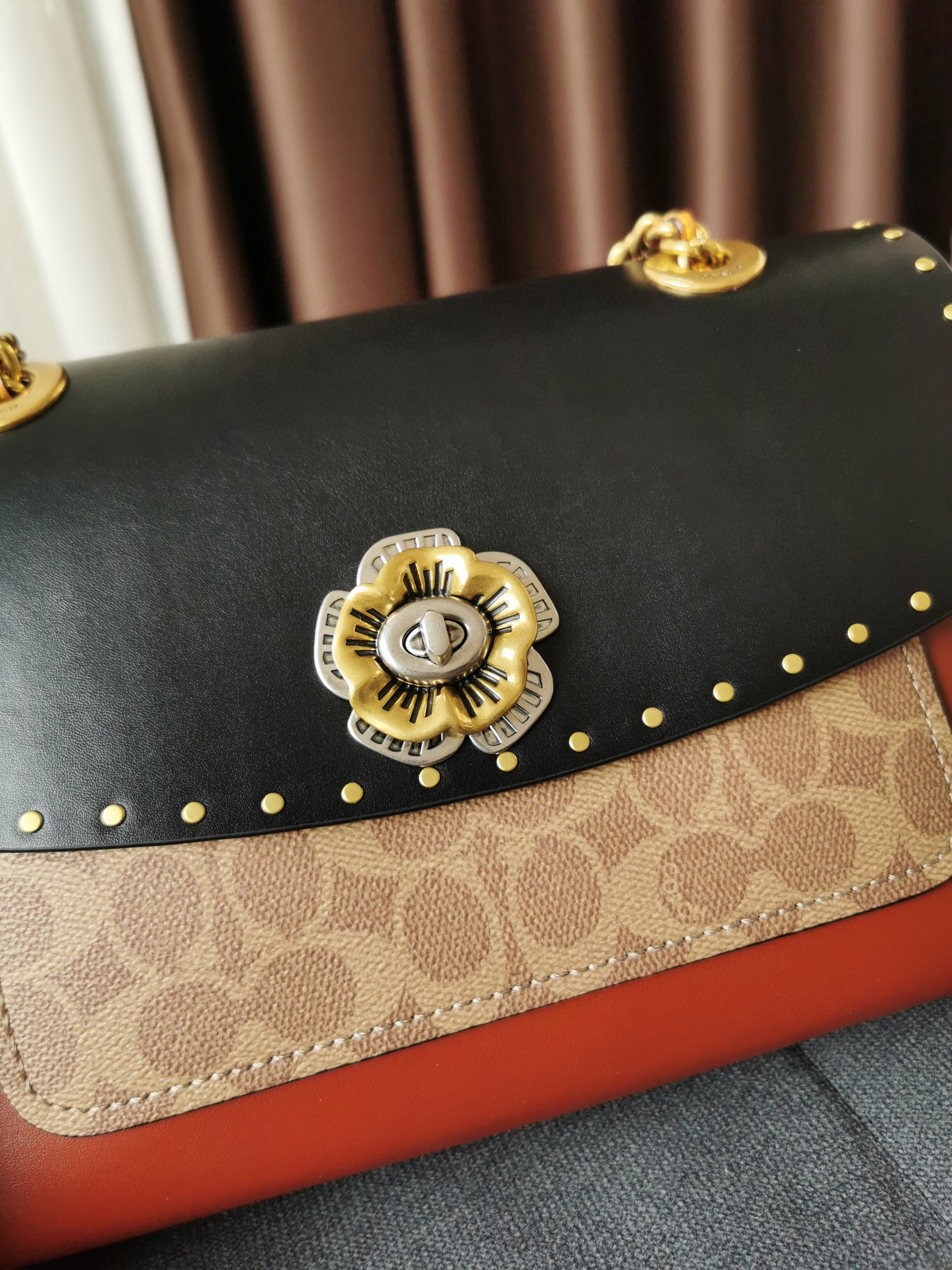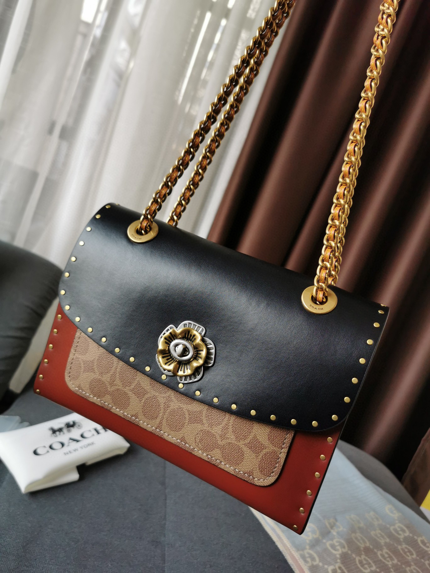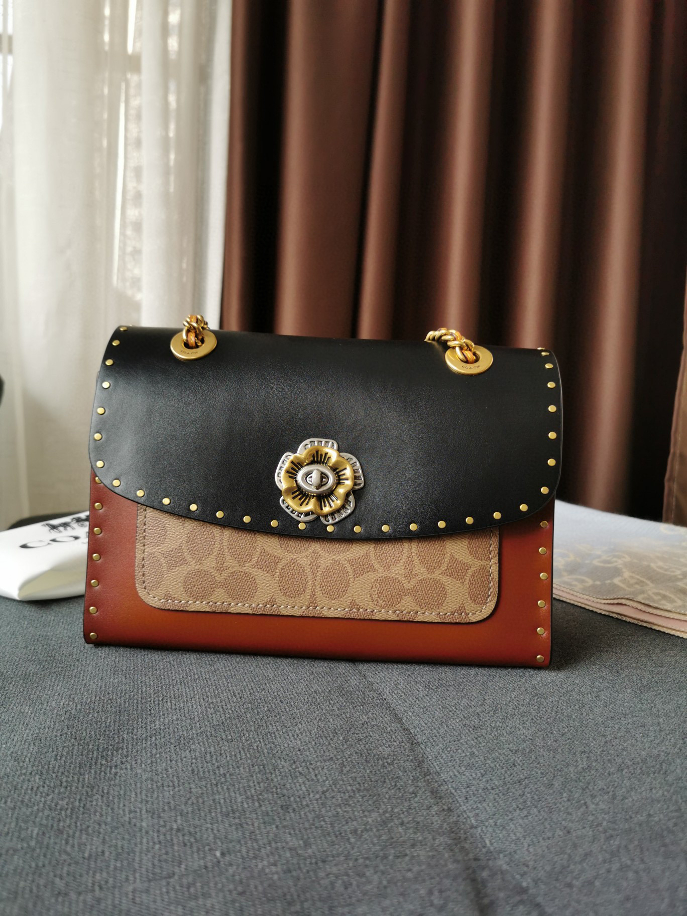 Coach蔻驰山茶花Parker26号-黑棕