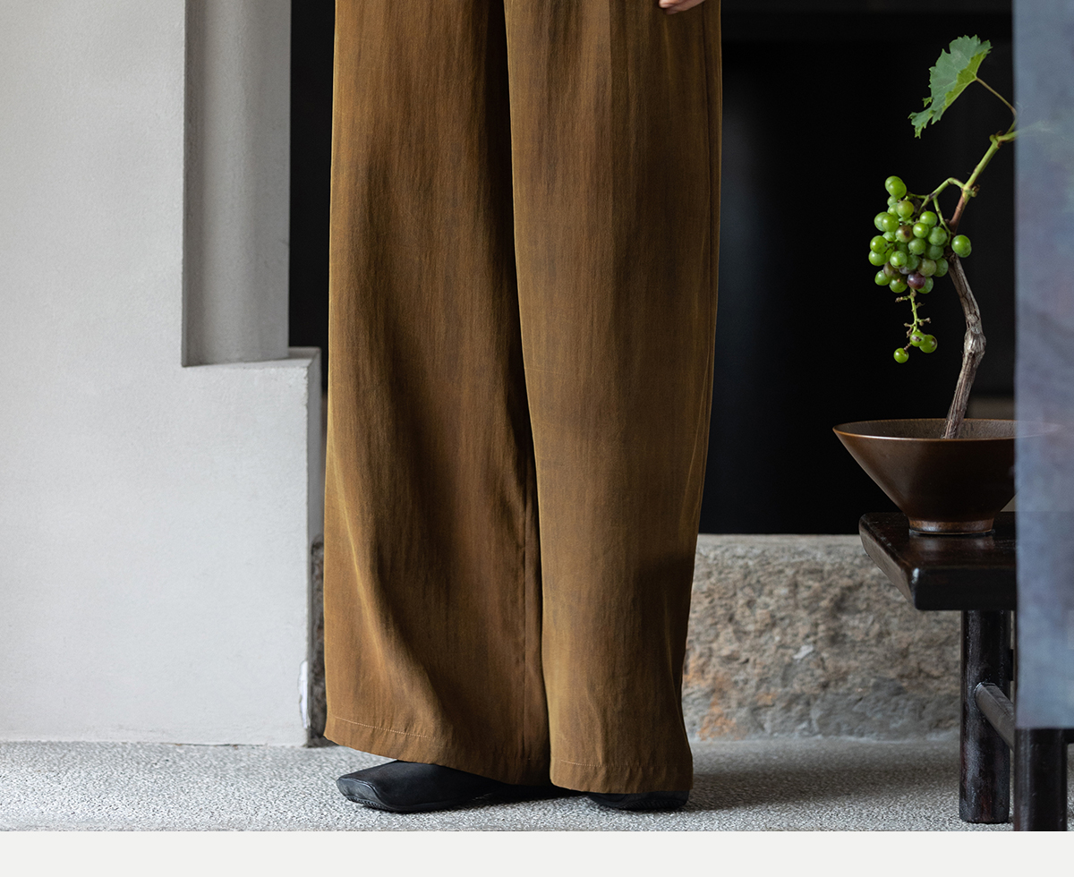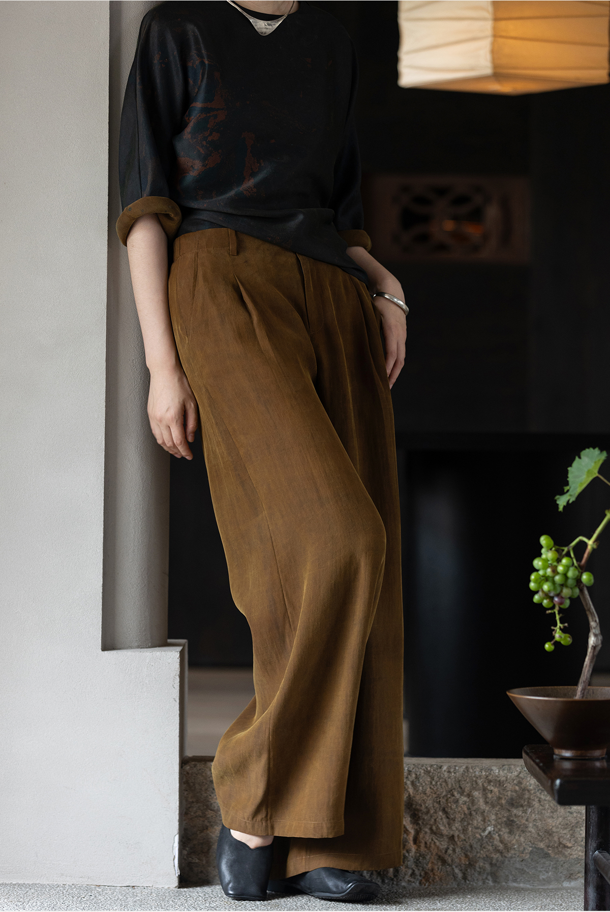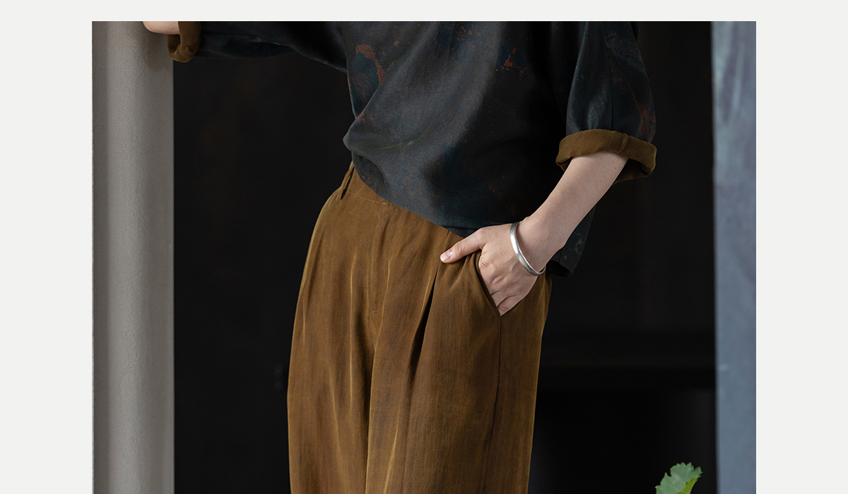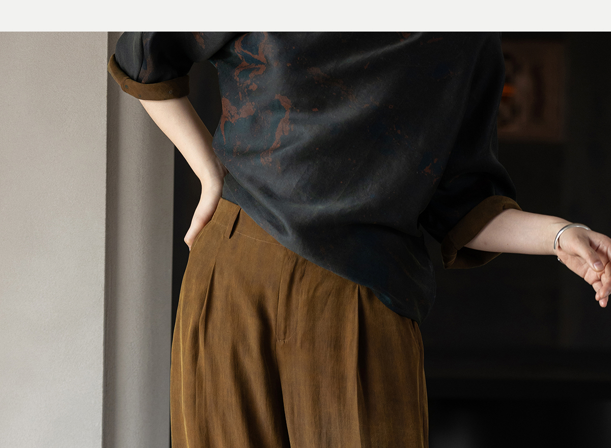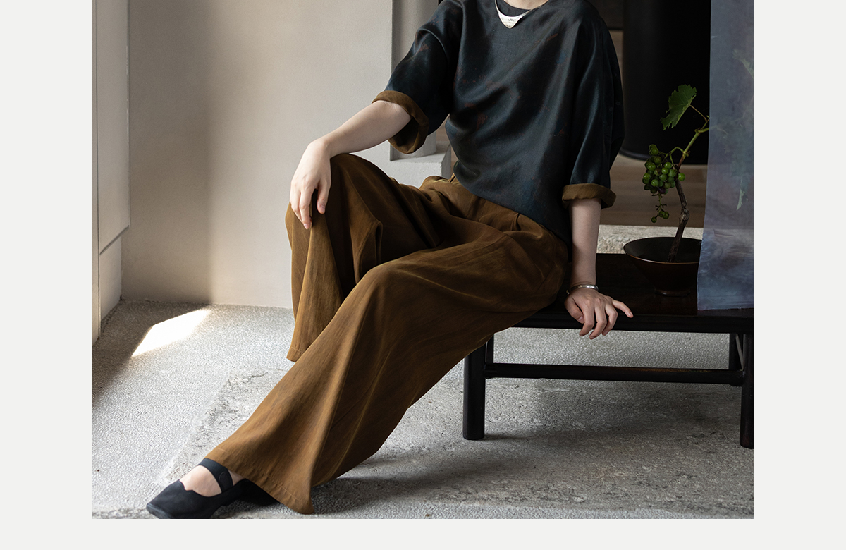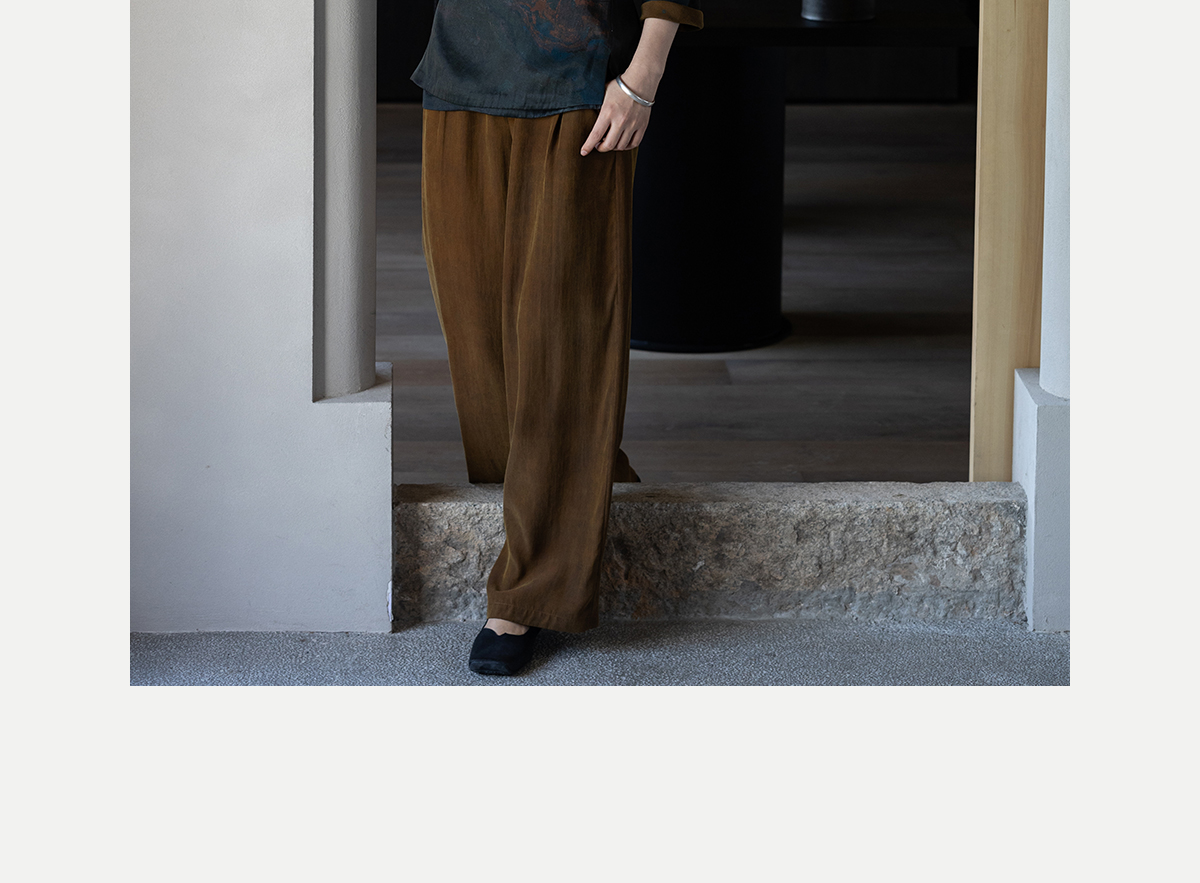 牧衣游原创 重磅25姆米香云纱裤子宽松垂感禅意真丝休闲裤 渠于苔