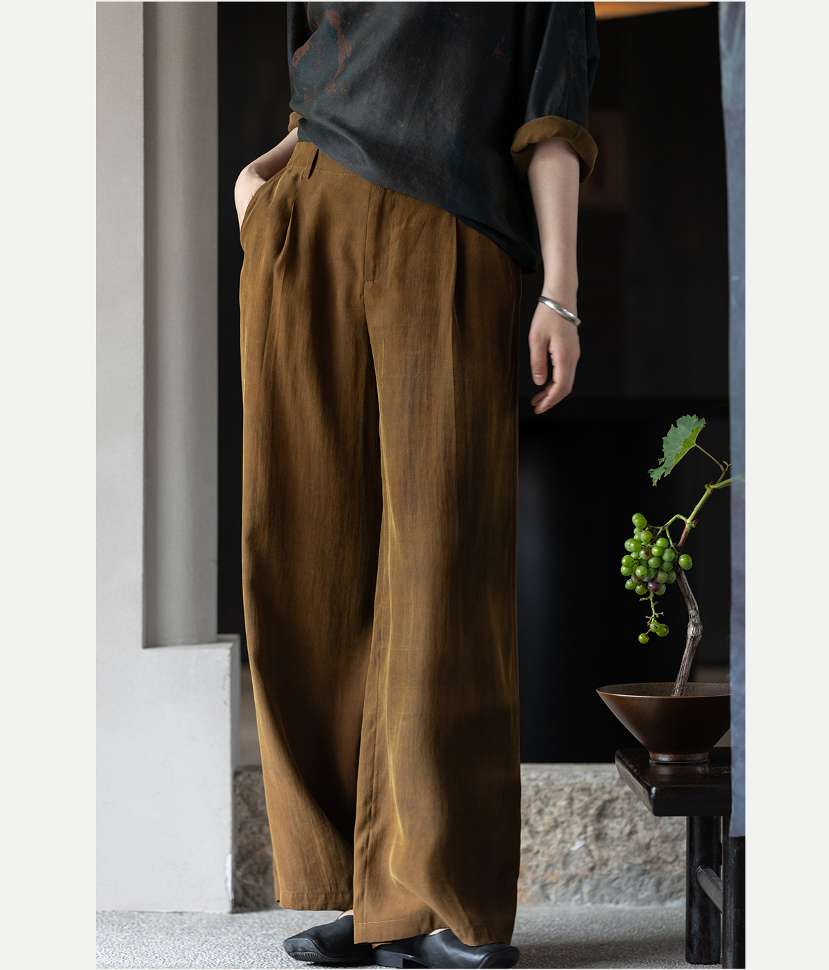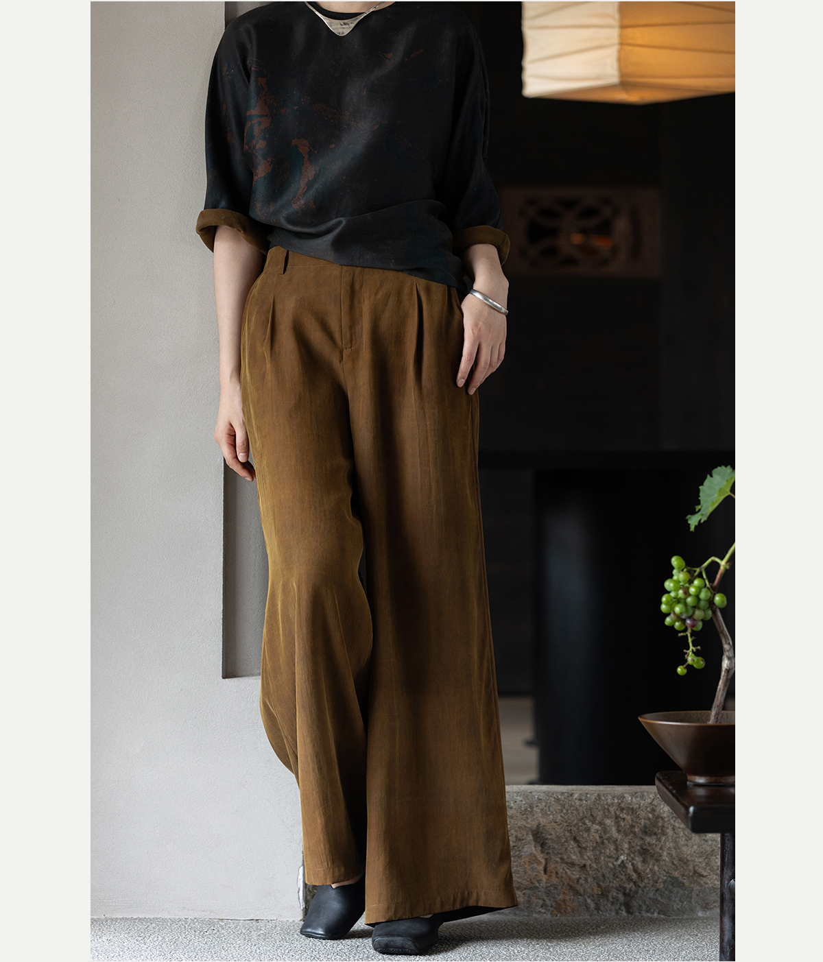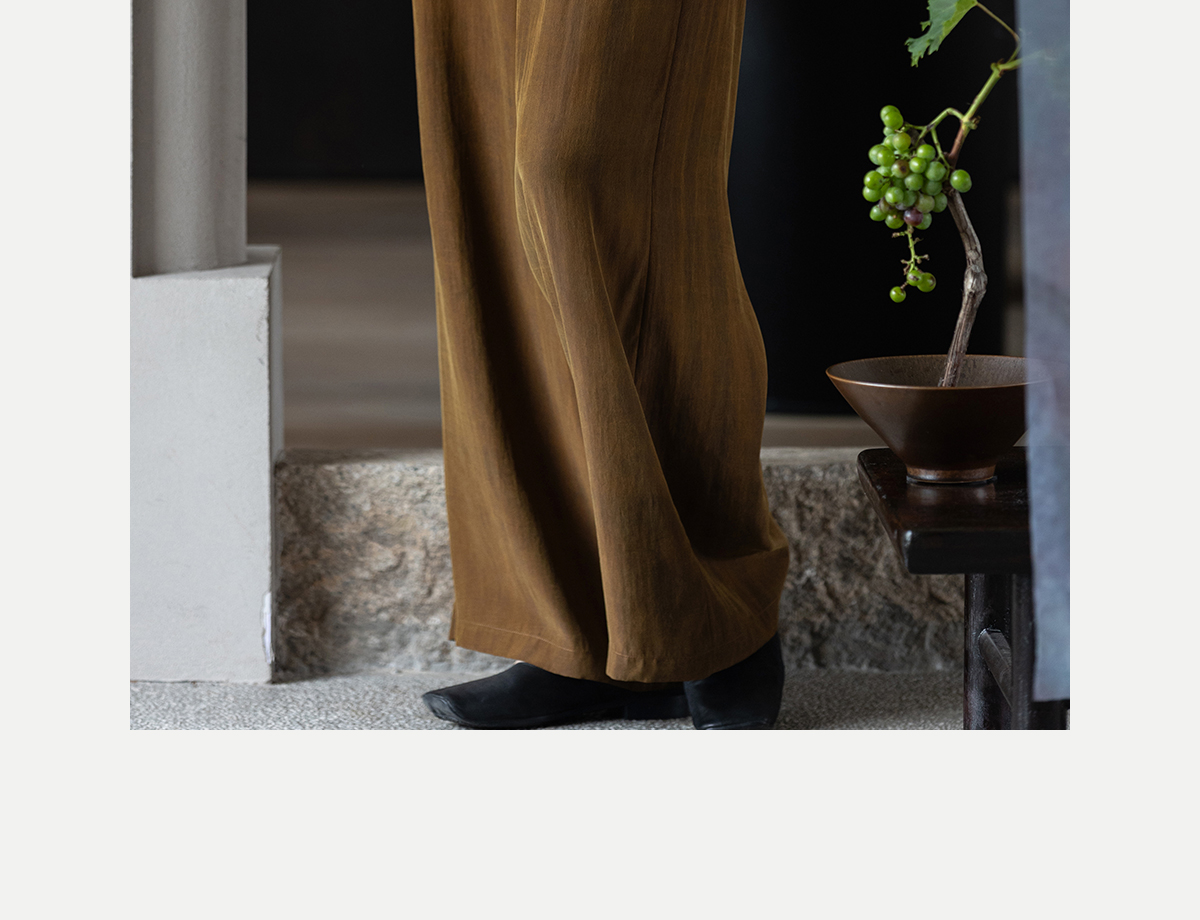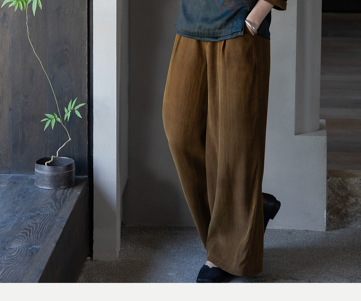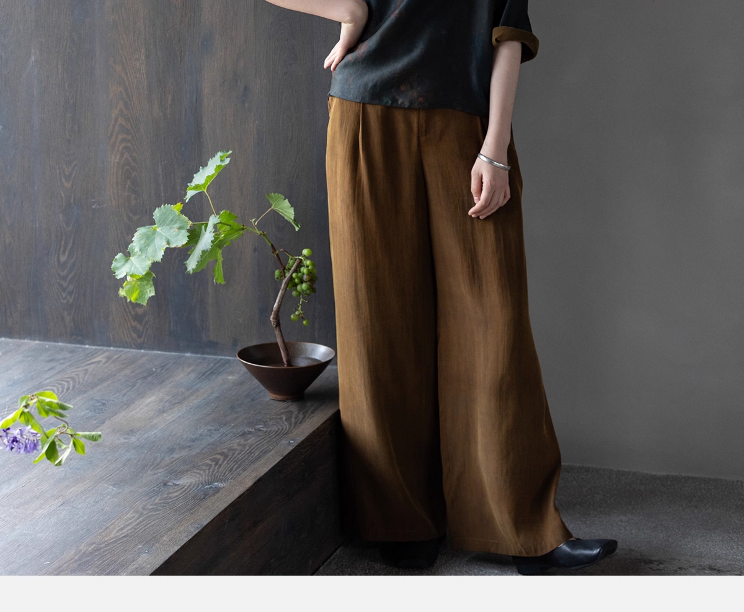 牧衣游原创 重磅25姆米香云纱裤子宽松垂感禅意真丝休闲裤 渠于苔
