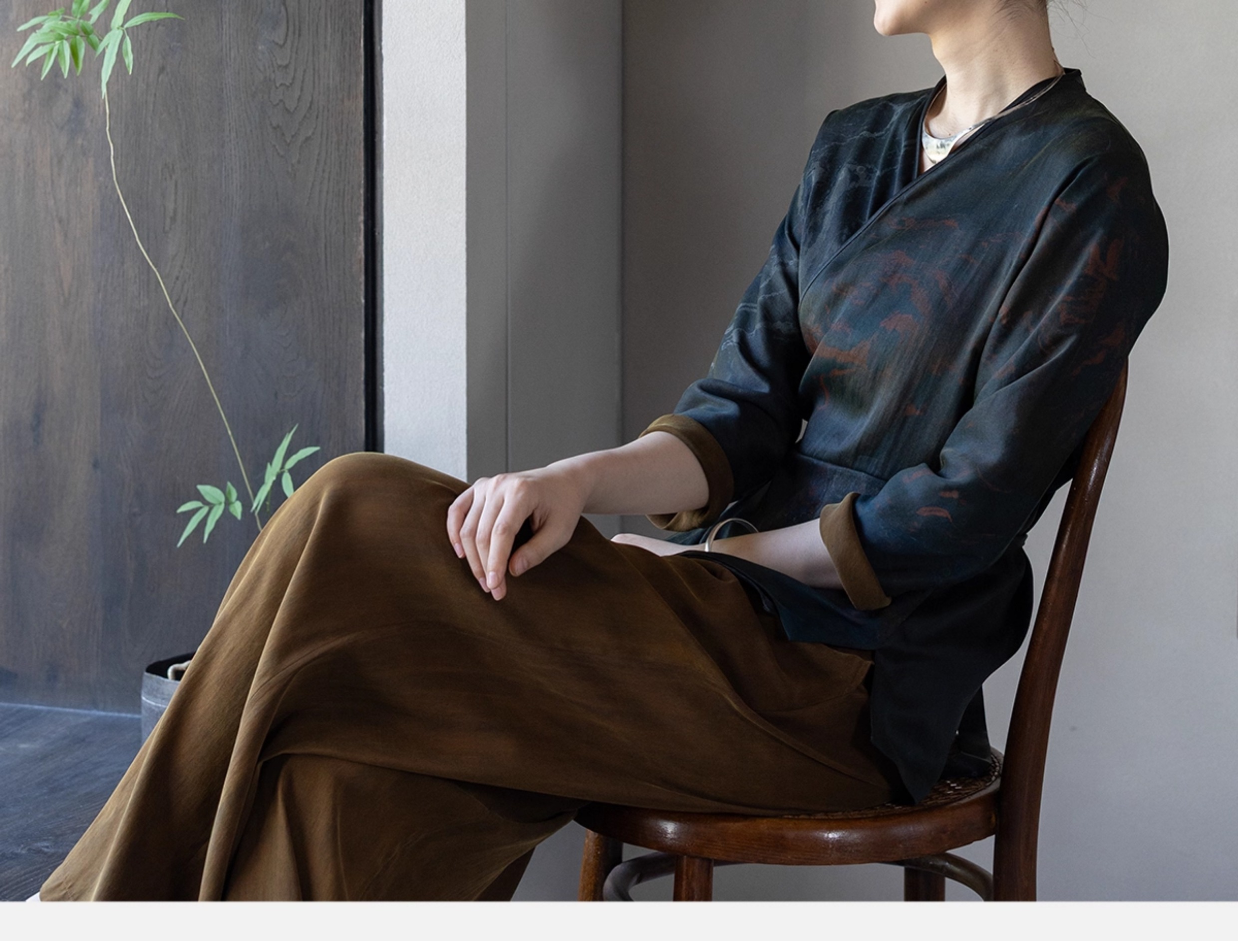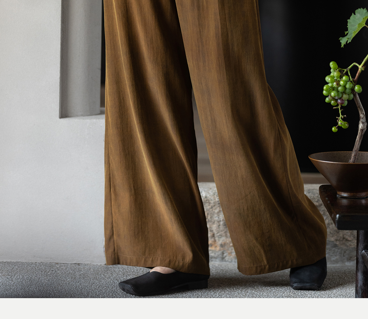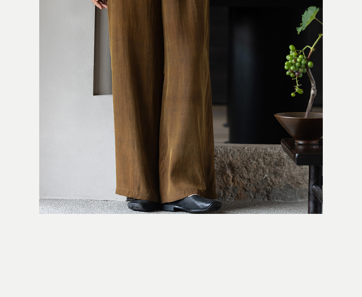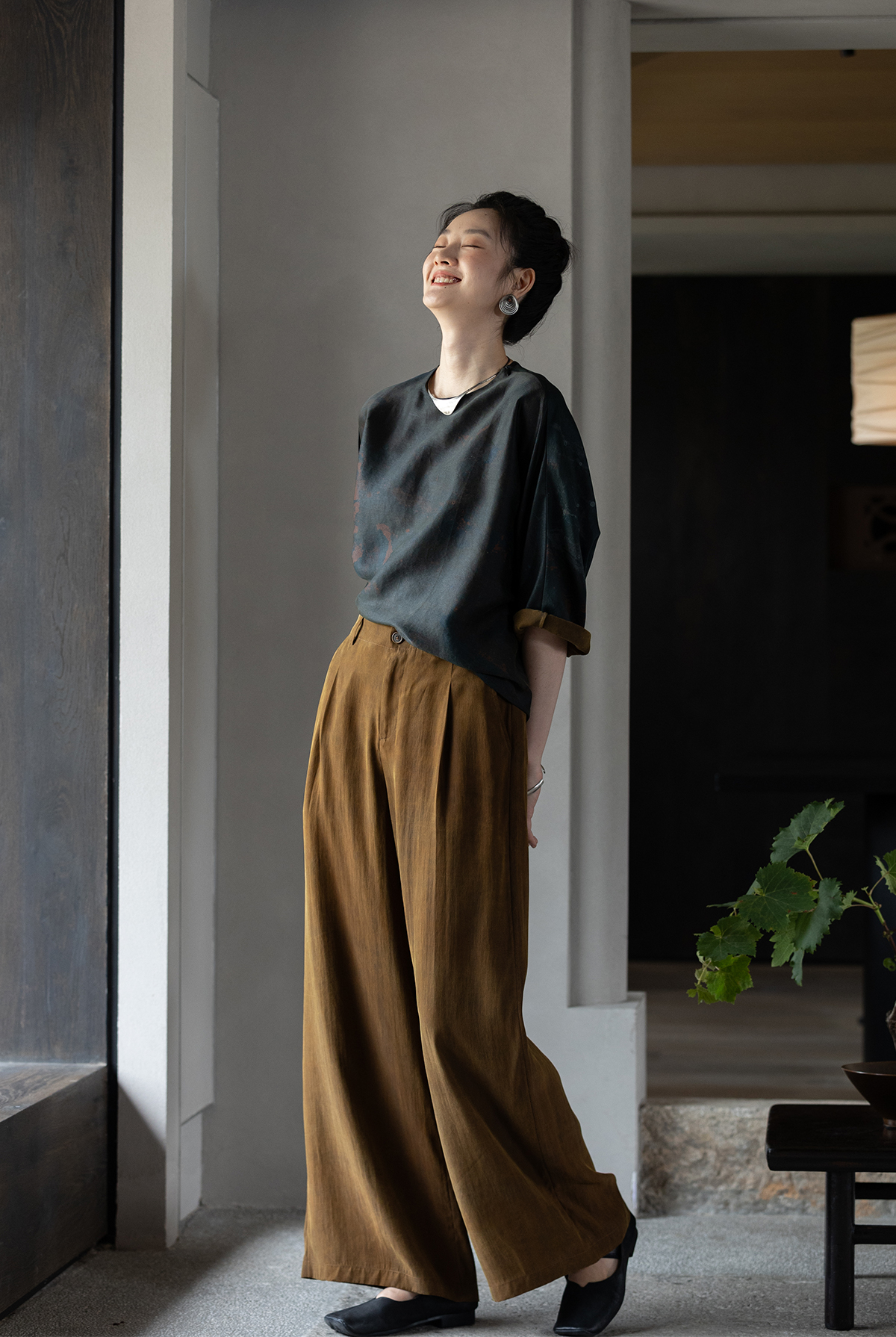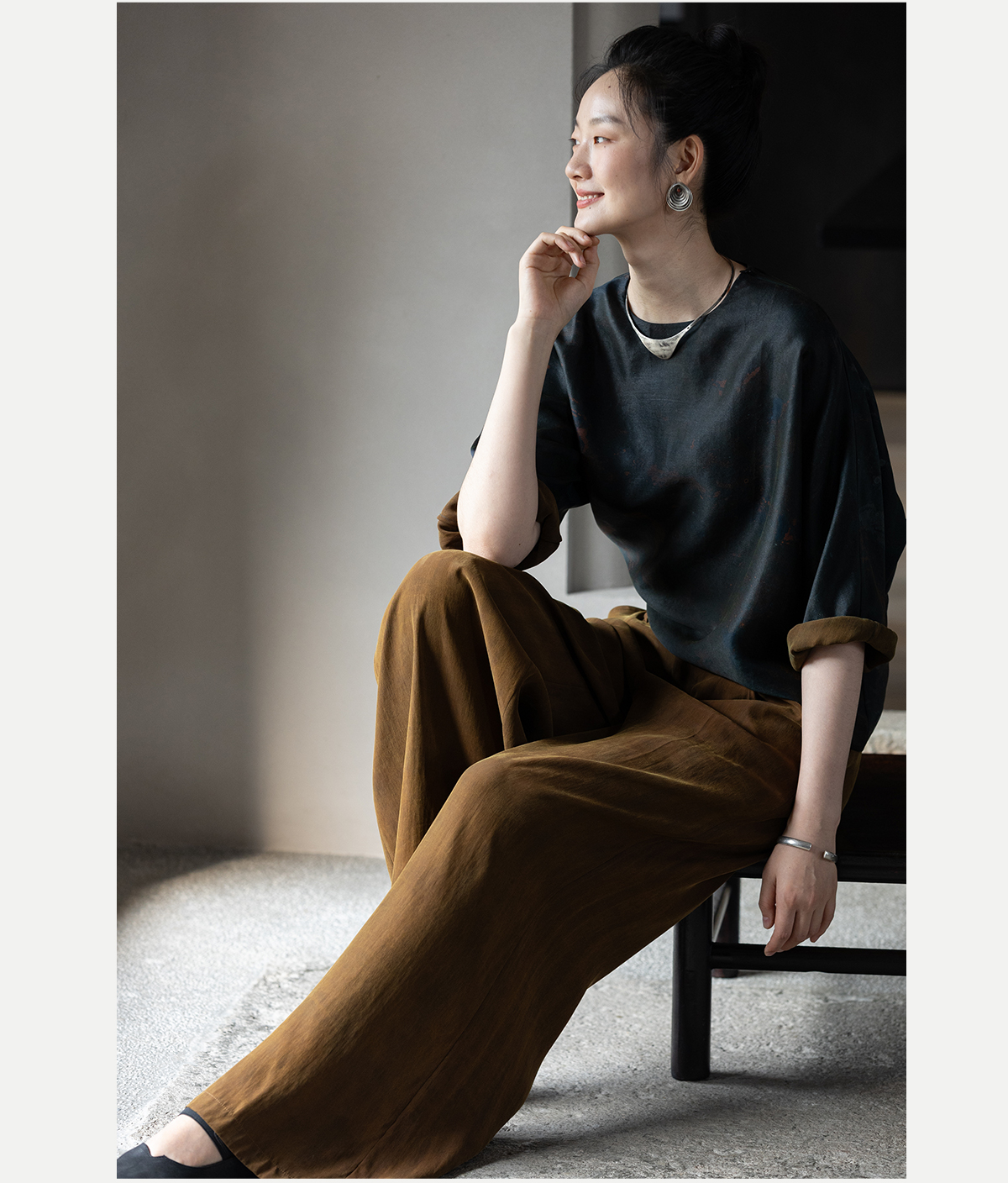 牧衣游原创 重磅25姆米香云纱裤子宽松垂感禅意真丝休闲裤 渠于苔