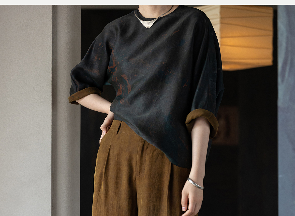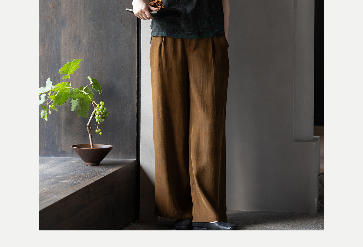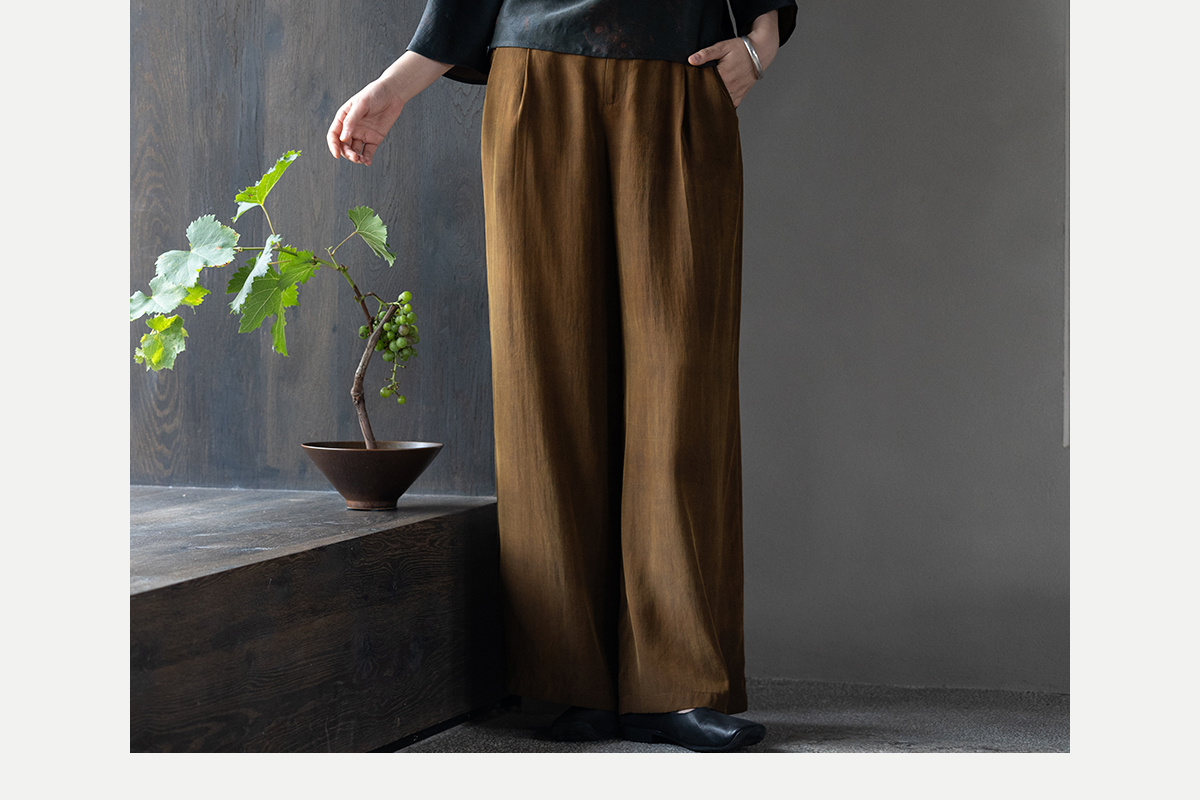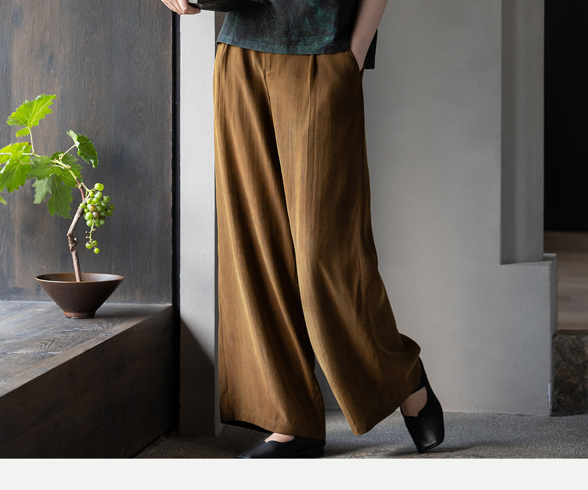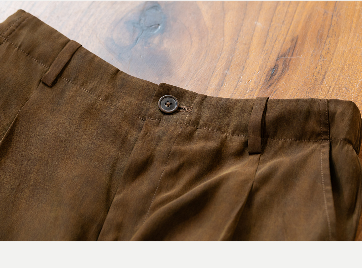 牧衣游原创 重磅25姆米香云纱裤子宽松垂感禅意真丝休闲裤 渠于苔