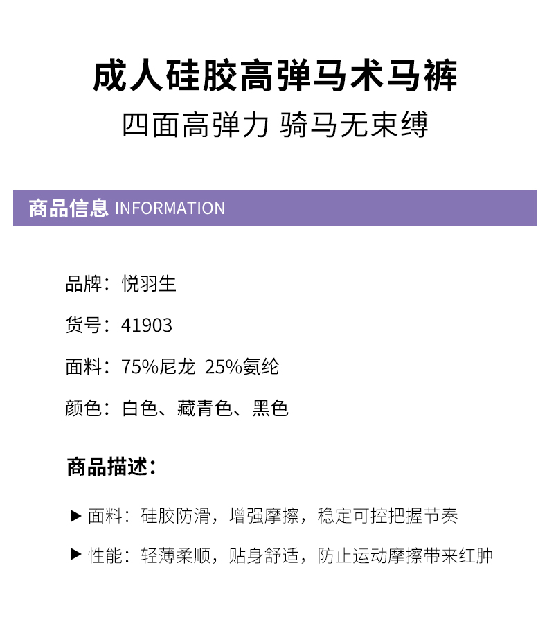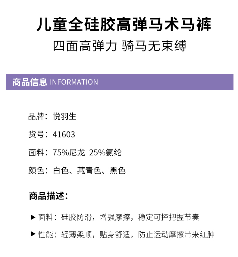 悦羽生儿童/成人女款高弹半硅胶马裤-41603儿童/41903成人女