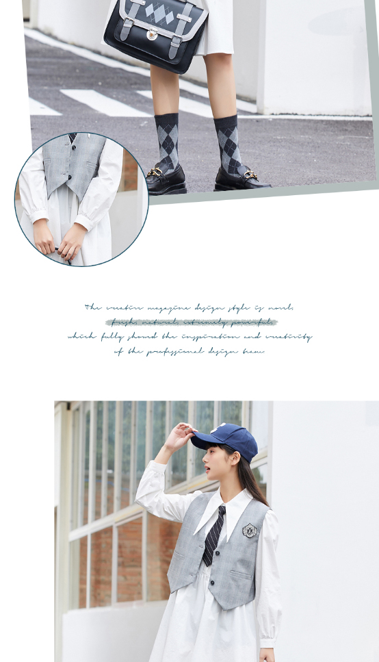 ZIHAN紫涵马甲连衣裙两件套女2022春新品学院风徽章背心白色连衣裙套装Z2Z01BS221