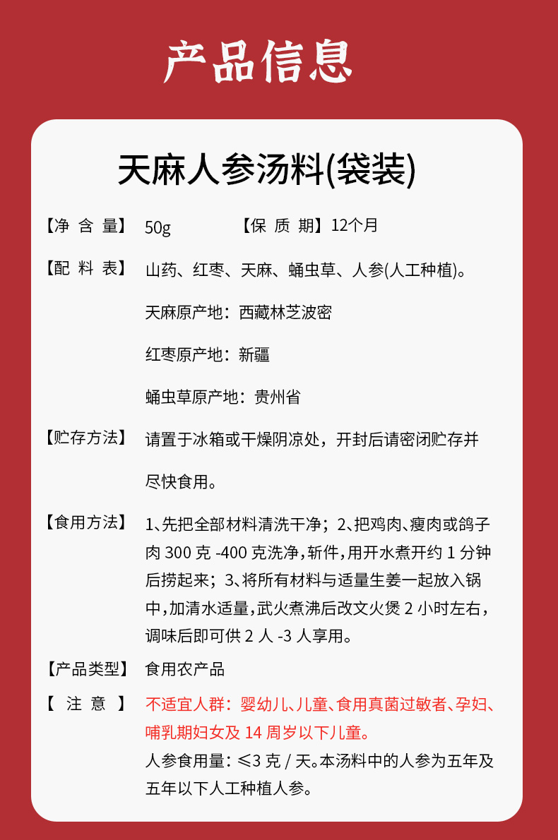 【从化帮扶】粤清香天麻人参汤料(袋装)丨50克
