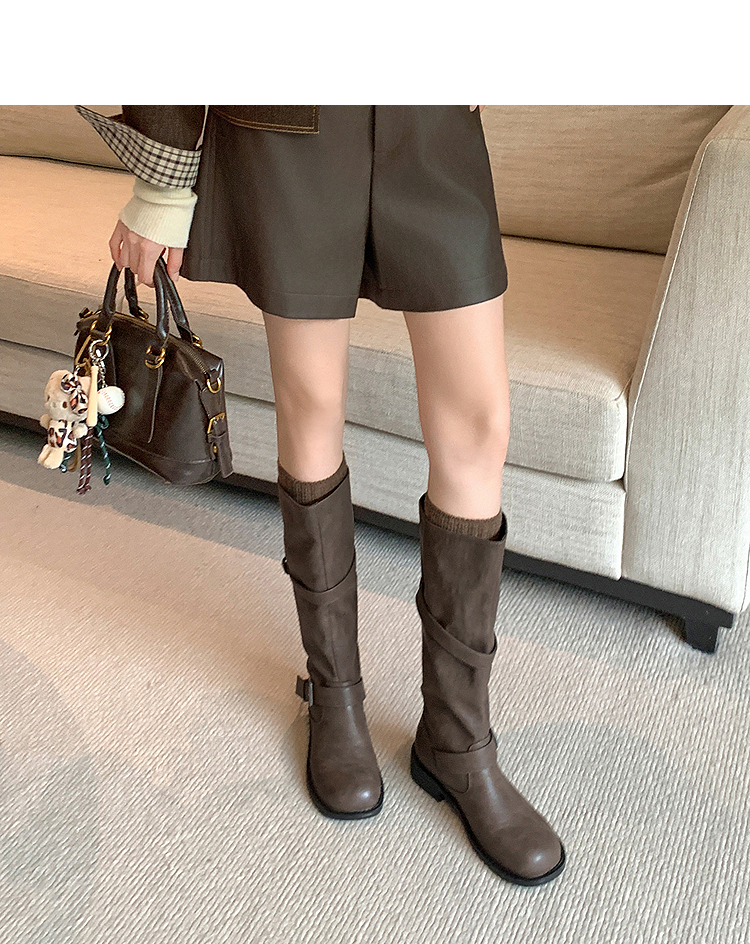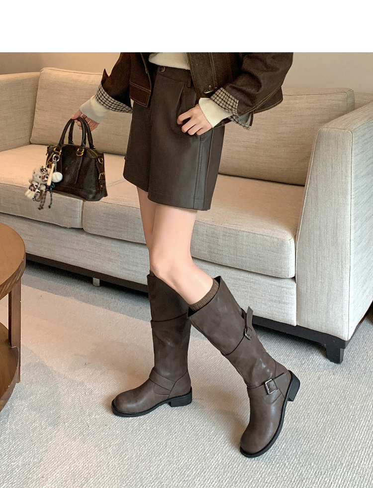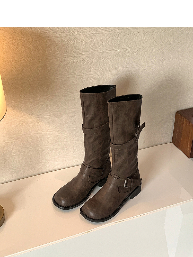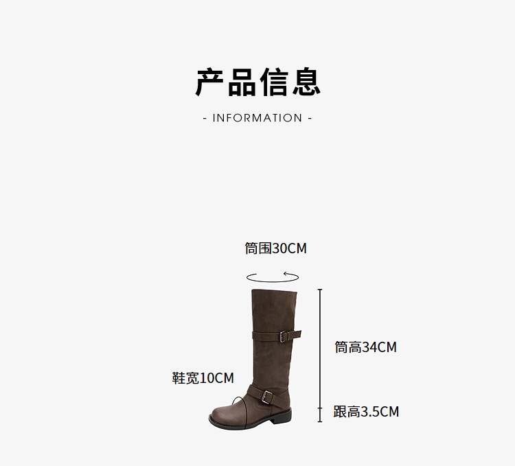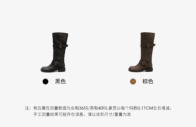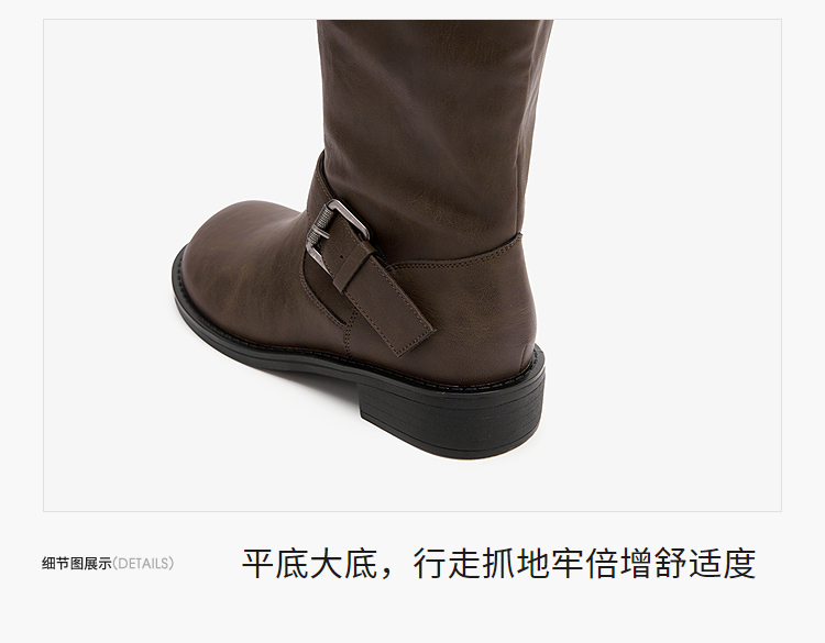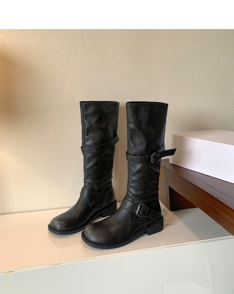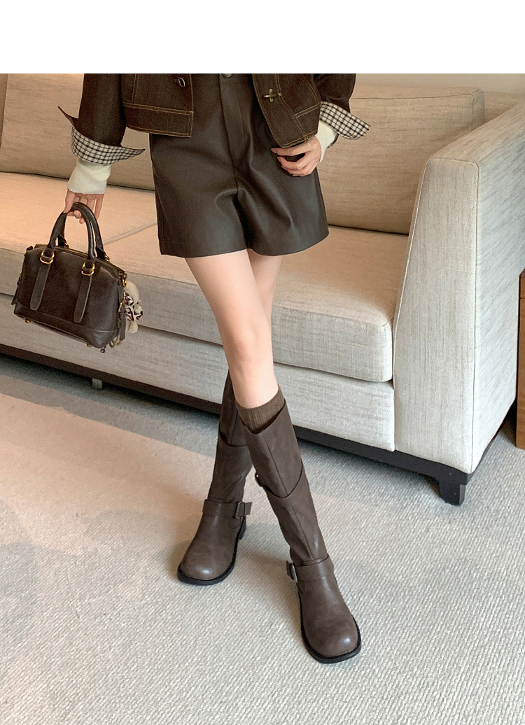 西遇不过膝长筒靴女新款秋冬复古英伦风骑士靴圆头粗跟长靴子V2257245