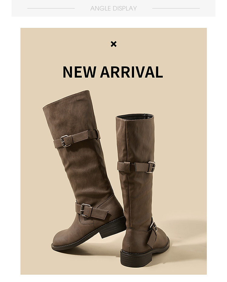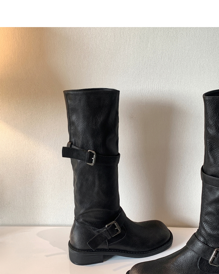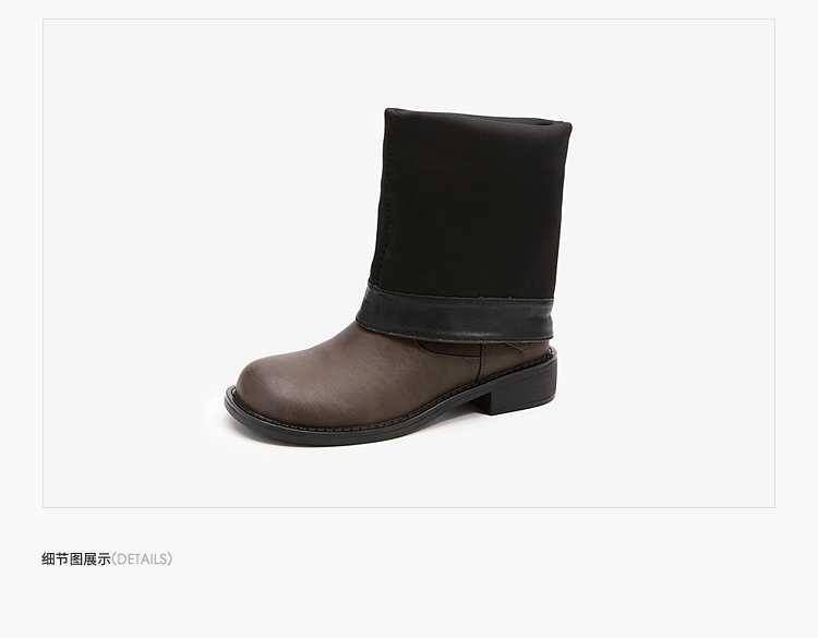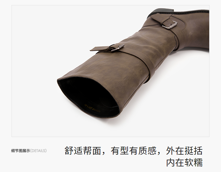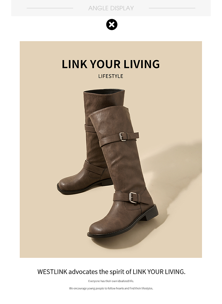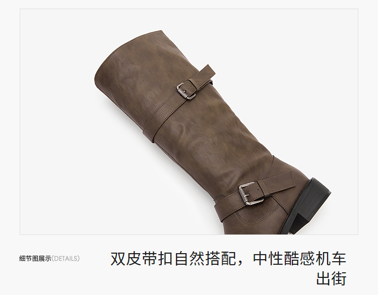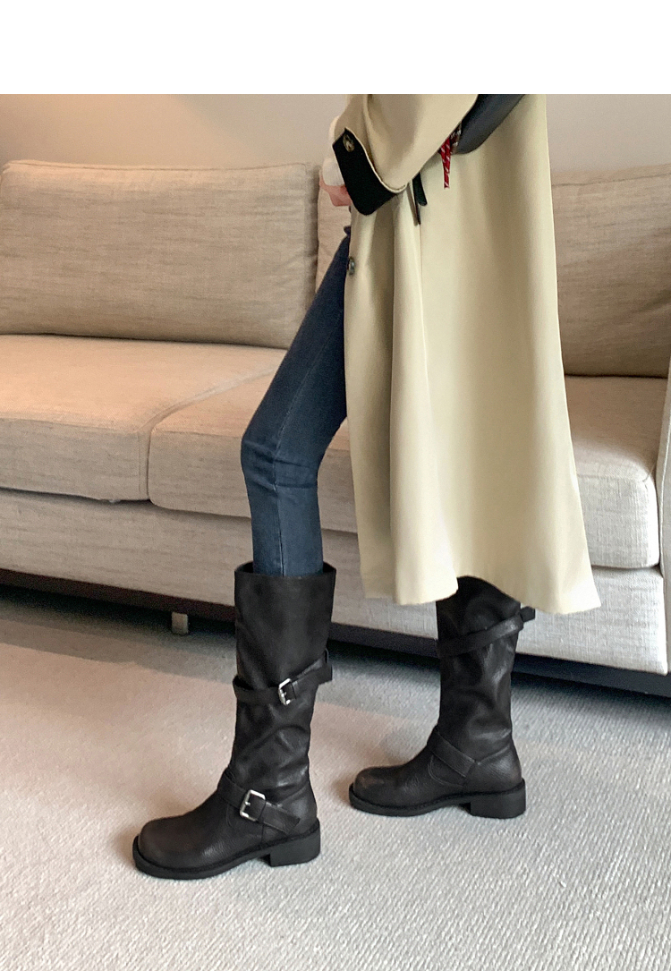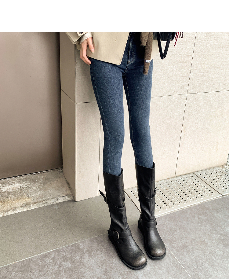 西遇不过膝长筒靴女新款秋冬复古英伦风骑士靴圆头粗跟长靴子V2257245