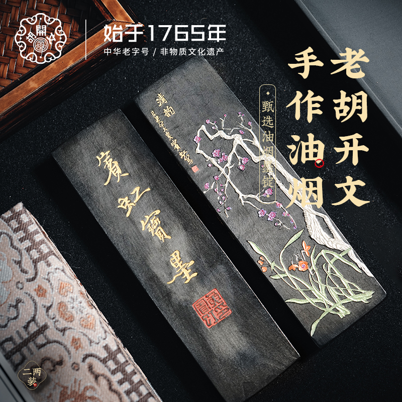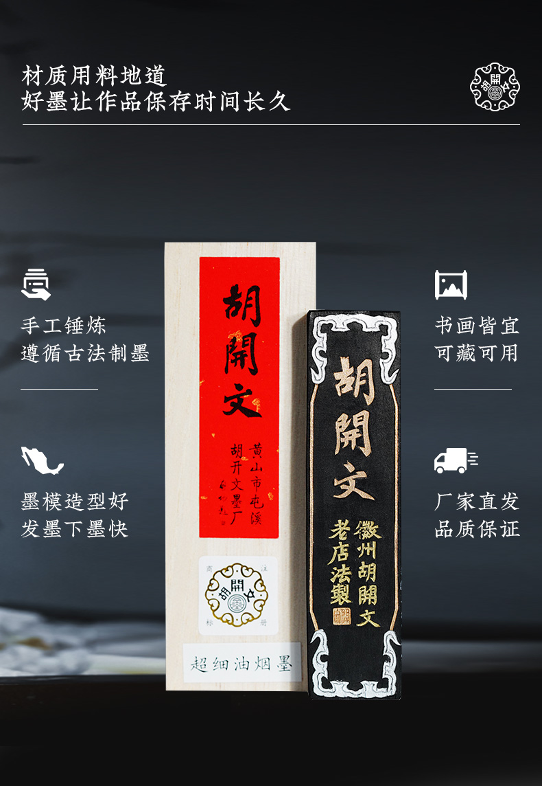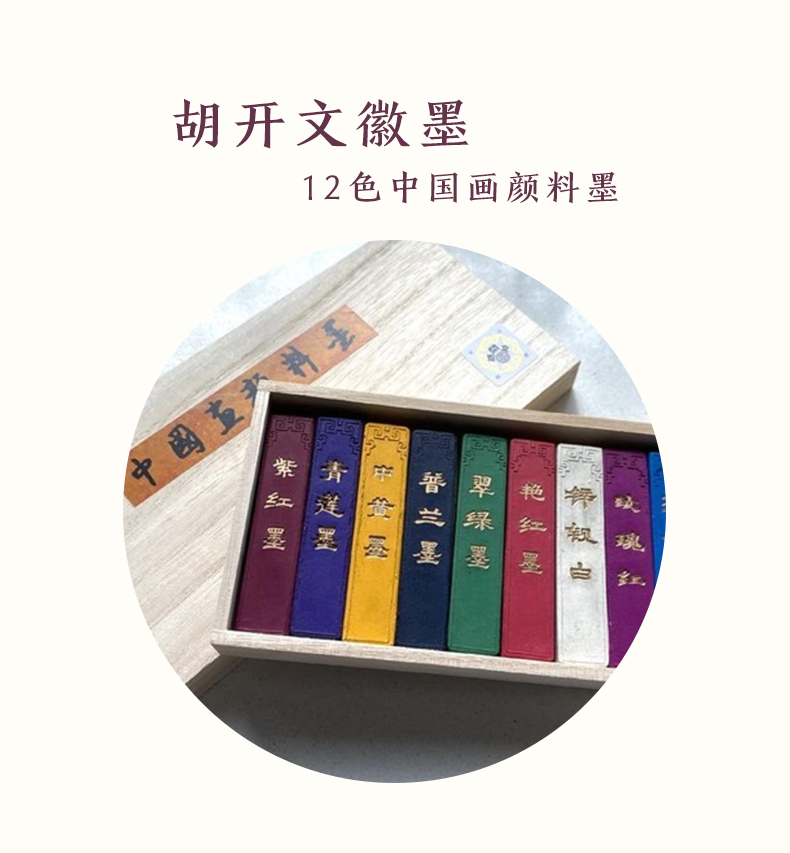 非遗胡开文系列徽墨 五彩墨&12色国画颜料墨&非遗技艺徽墨琴墨,胡开文超细油烟墨,胡开文龙门松烟墨