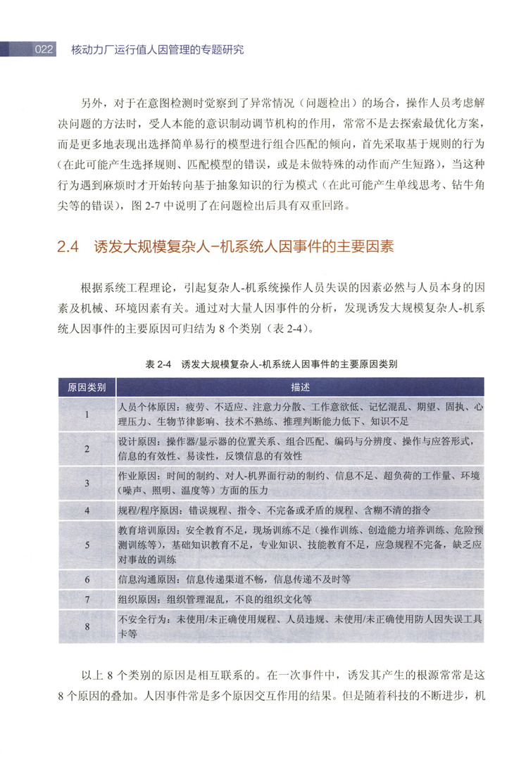 2.4 诱发大规模复杂人-机系统人因事件的主要因素