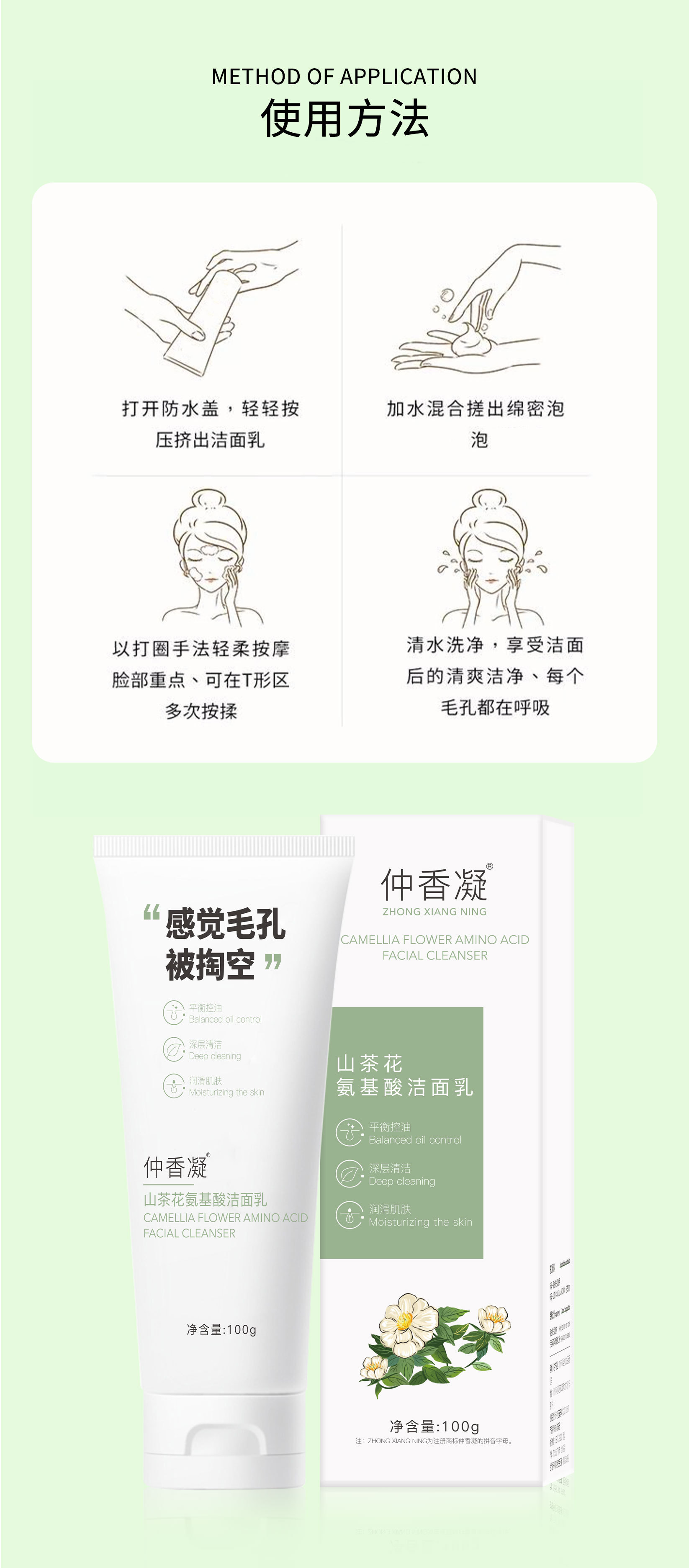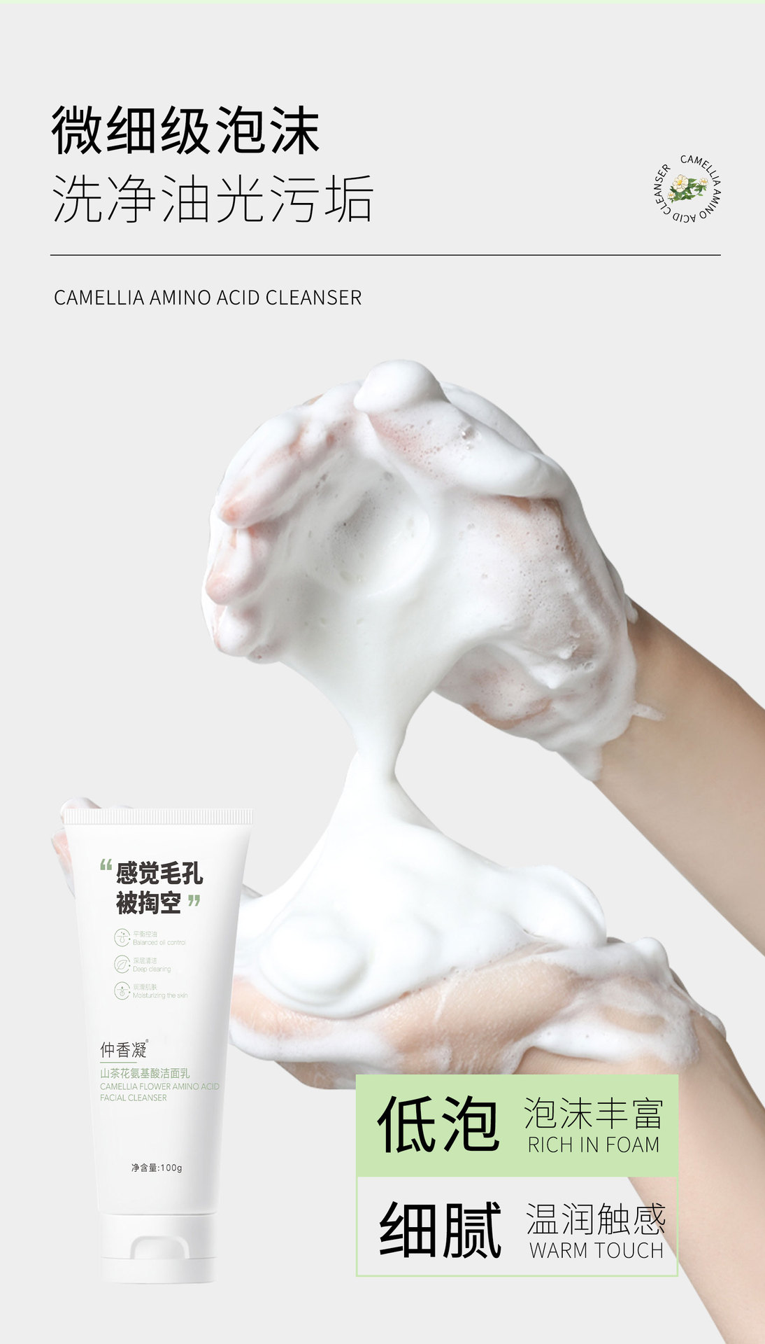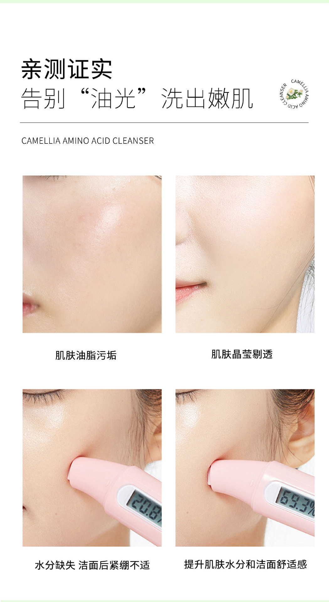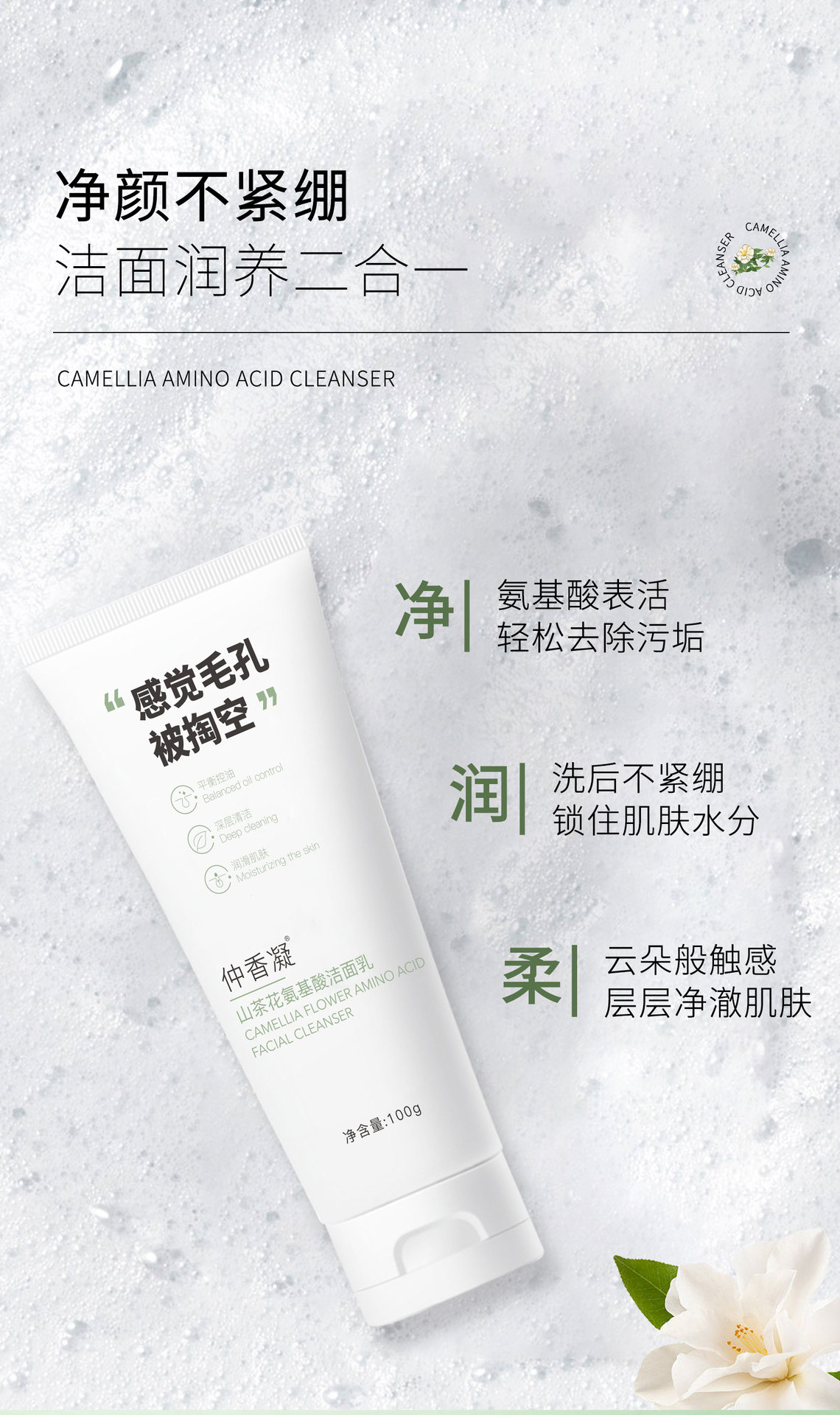 氨基酸配发 控油清洁 山茶花氨基酸洗面奶 深层清洁毛孔温和敏感肌洁面霜乳膏保湿水