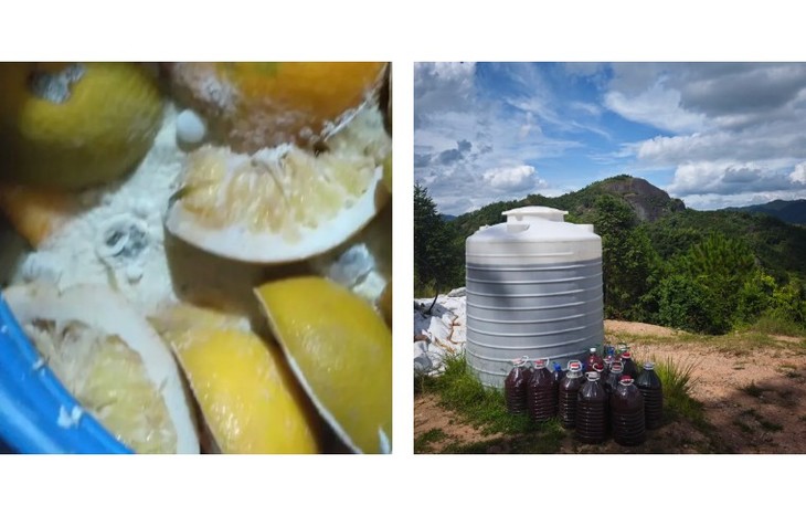 自制脐橙酵素,使用菌类和有机标准允许使用的铜制剂以及悬挂黄板,防治病虫害。
