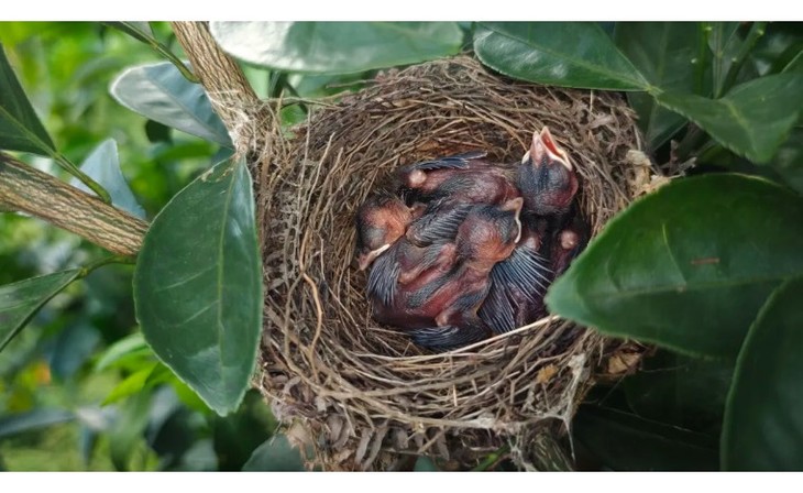 果园形成小的生态环境,小鸟也选择在果园里安家。