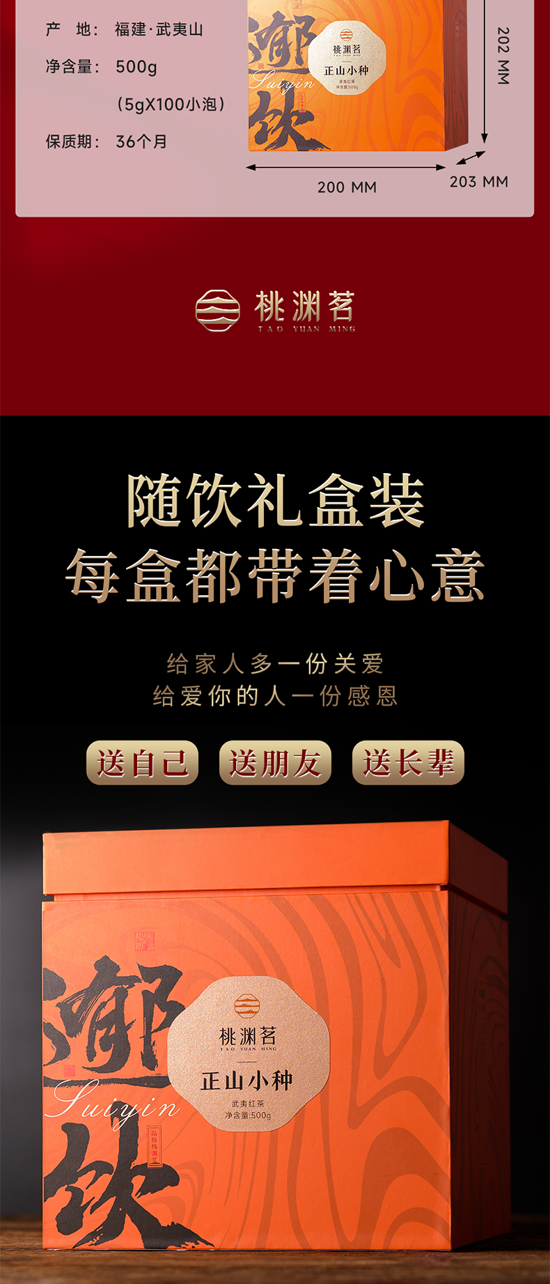 【老品牌 原产地 好口碑】桃渊茗 随饮 正山小种 60泡/盒 共510g/盒 礼盒装