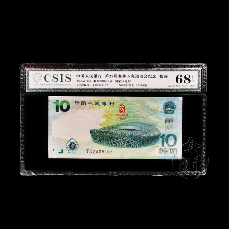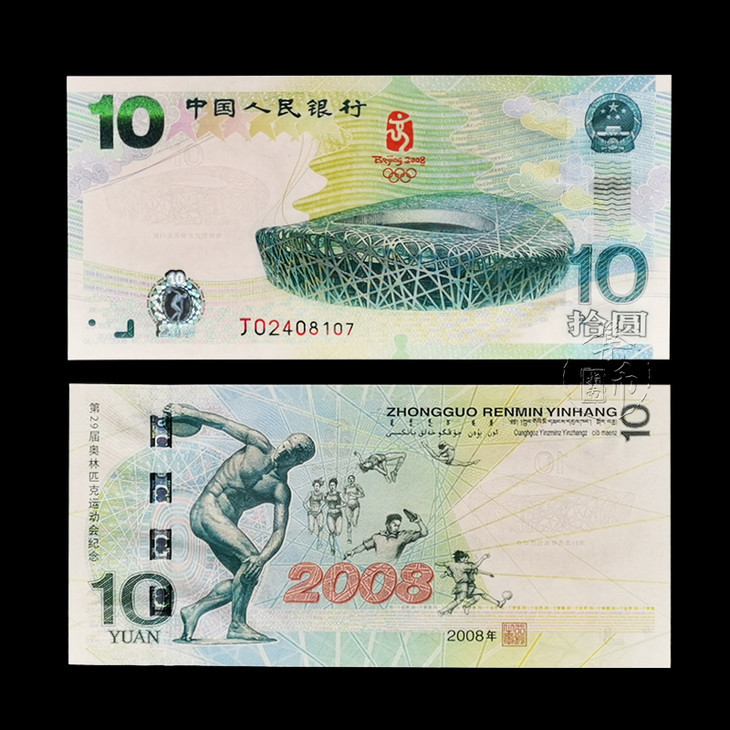 2008北京奥运10元纪念钞 单张封装